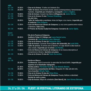 Finally, on June 26, 27 and 28, the third edition of Flest, the Estepona Literary Festival, will take place.