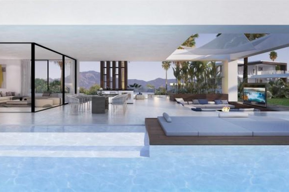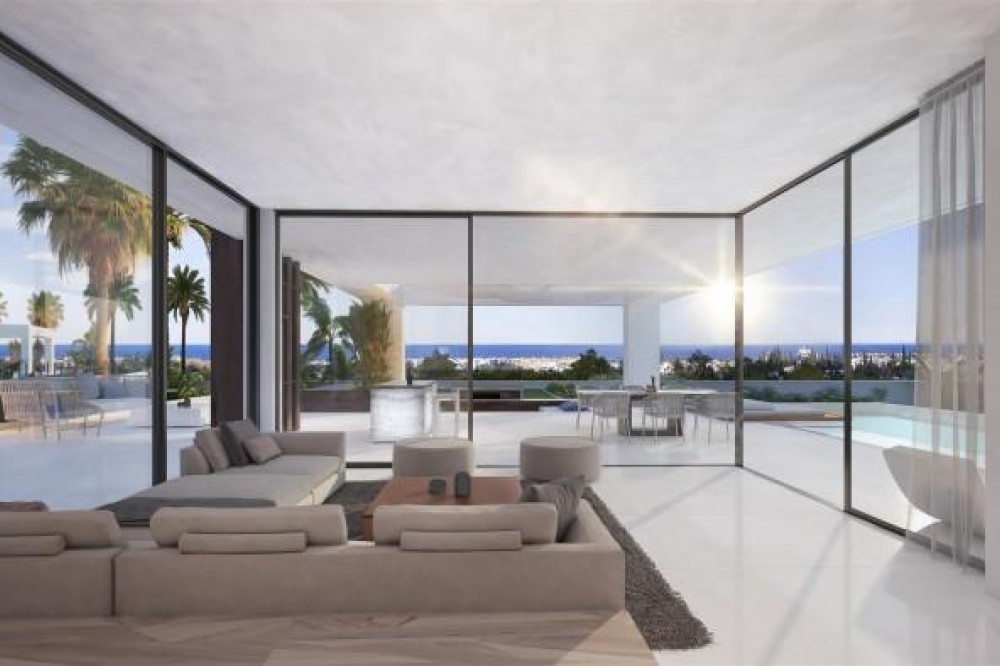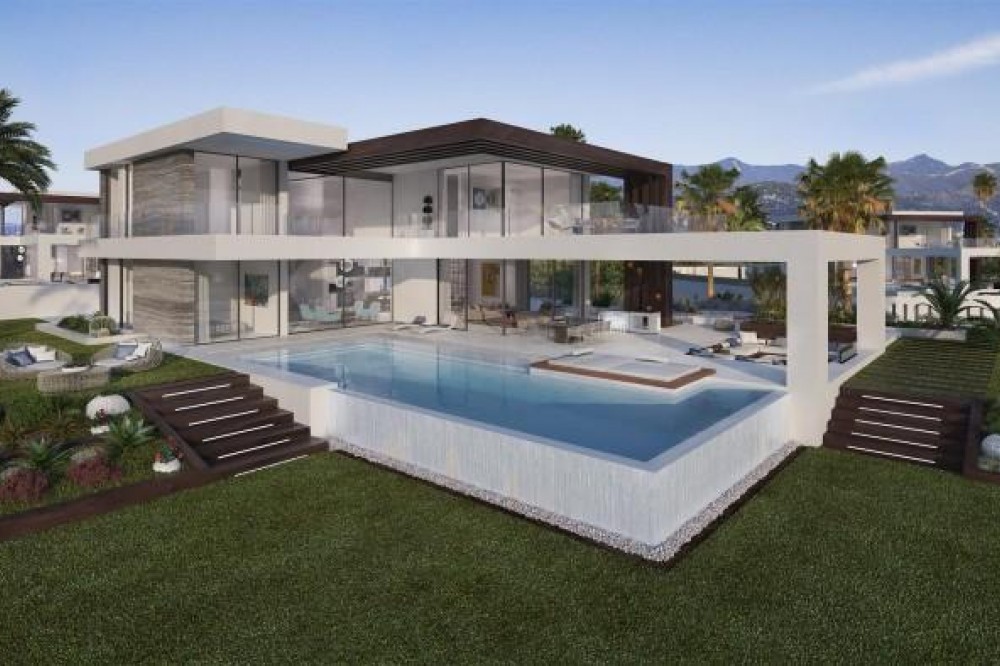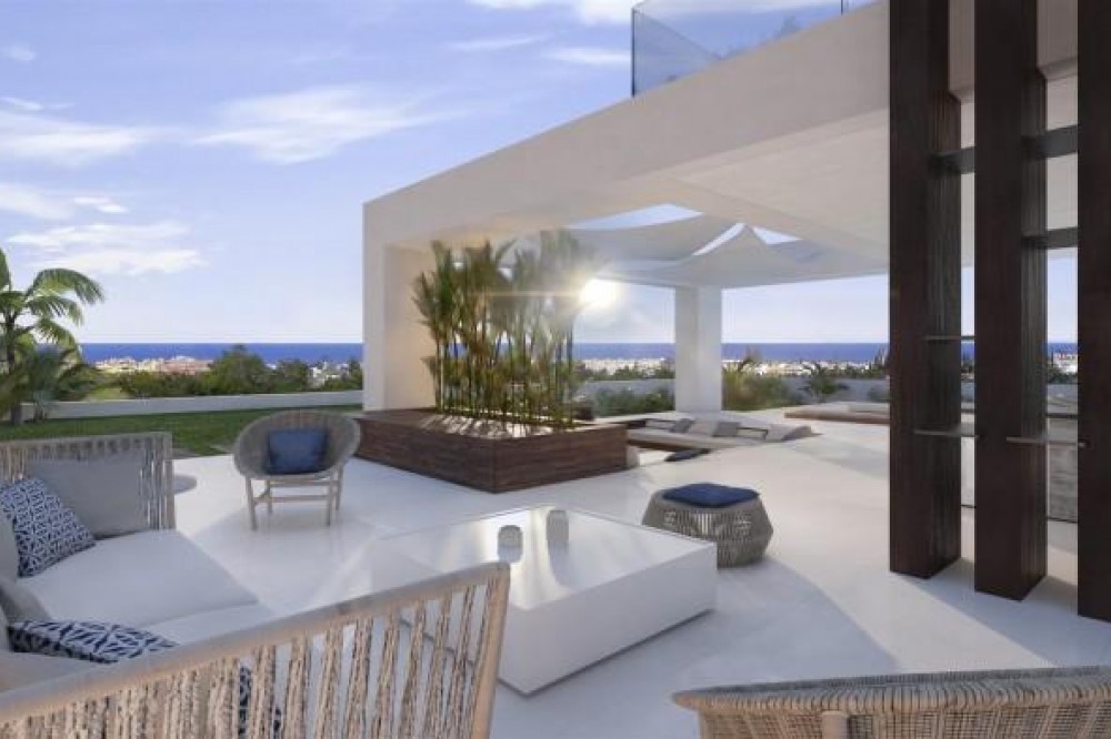 • New development of Contemporary villas for sale East side of Estepona. The perfect place to unwind and indulge, luxury awaits you in this new development that comprises 12 independent villas with unique and contemporary design. Plots are from 965m² to 1095m² perfect size for a unique villa. Large open plan living, offers distinct areas to relax with access to great terraces, infinity pool and two level large garden. Terraces are accessed by sliding floor-to-ceiling doors and integrate both living spaces into one, to maximize abundant natural light and space. All bathrooms are on suite and features lavish finishes and highest quality characteristics. Double height entrance with fantastic size to welcome your friends and family. Fully fitted kitchens to the highest standards and separated laundry area. The villas have been designed using the latest techniques to have an ecological and low maintenance building and sophisticated details with luxury finishes. All villas are south facing with stunning sea views.