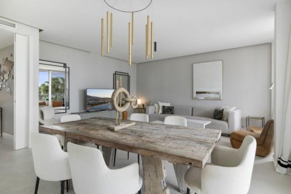 • Experience the ultimate in coastal luxury with this exquisite three-bedroom apartment, located in the prestigious beachfront development The Edge in Estepona. Positioned on the second floor and offering uninterrupted views of the Mediterranean, this elegant home combines refined modern design with a rare beachfront lifestyle on the New Golden Mile. The apartment boasts a spacious, light-filled living and dining area that seamlessly connects to a sleek, fully fitted open-plan kitchen—perfectly designed for both everyday living and entertaining. The master suite is a private retreat, featuring a walk-in dressing area and a stylish en-suite bathroom. Two additional guest bedrooms share a beautifully appointed bathroom, and there is a separate guest toilet for added convenience. Floor-to-ceiling glass doors open onto a generous covered front terrace with stunning views over the landscaped gardens, the infinity-edge pool, and the sparkling sea beyond. A second, southwest-facing rear terrace offers an ideal spot to unwind and enjoy the late afternoon sun in total privacy. Residents of The Edge enjoy exclusive access to top-tier amenities, including a 24-hour gated security service, a spectacular outdoor pool set in lush tropical gardens, a heated indoor pool, a state-of-the-art gym, and a luxurious spa area with sauna. The property also includes two underground parking spaces and a private storage room. Perfectly located just steps from the beach and within walking distance of shops and dining options, the apartment is only a short drive to Estepona port and the charming town centre. This stunning residence is ideal as a primary home, a luxury holiday retreat, or a smart investment in one of the Costa del Sol’s most coveted beachfront communities.