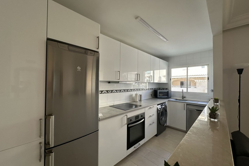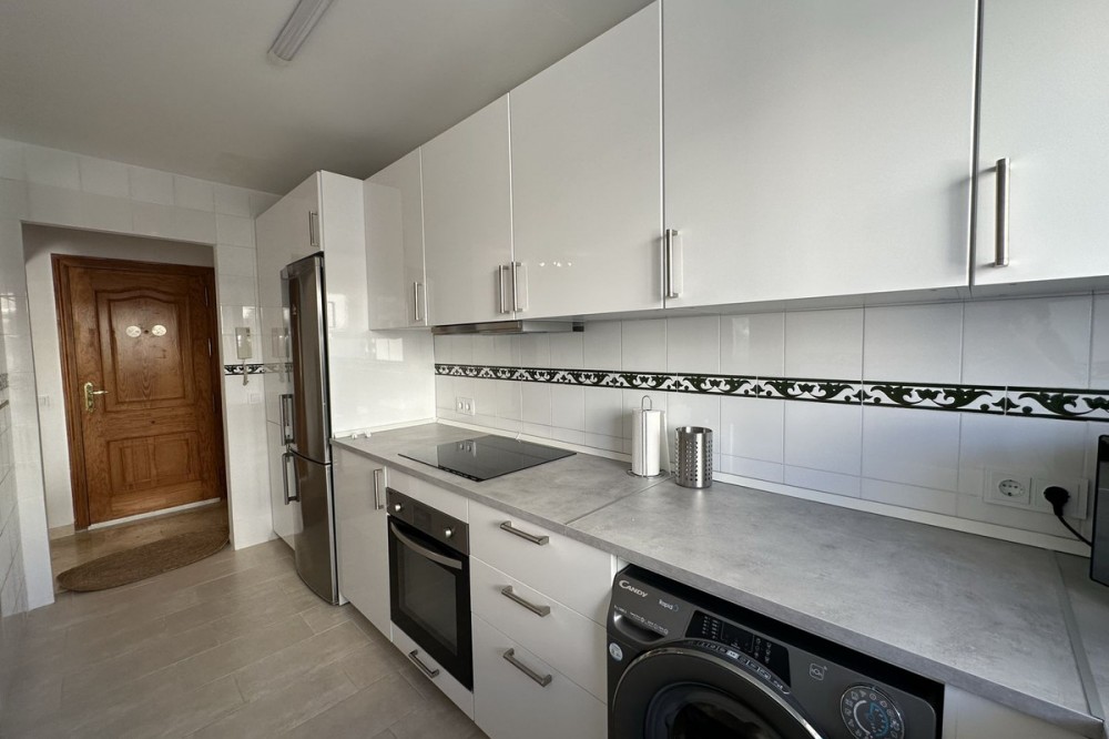 - For Sale: Renovated, Fully Furnished 2-Bedroom Beachfront Apartment in Estepona Marina Bay. Discover this stunning, fully renovated 2-bedroom apartment in a sought-after front-line beach development in Estepona. Perfectly positioned just 100 meters from the famous El Cristo Beach Playa del Cristo, this south-facing apartment offers breathtaking sea and pool views, making it an ideal home or investment opportunity. Upon entering, you’ll immediately notice the bright and airy feel of the brand new open-plan kitchen, which has been designed to maximize natural light and create a seamless flow between the living spaces. The kitchen allows you to cook and entertain simultaneously while still enjoying family time or watching the gorgeous sunsets over the Mediterranean. The spacious living room opens directly onto a cozy terrace, where you can relax and take in panoramic views of the sea and the development’s inviting swimming pool. This outdoor space is perfect for enjoying your morning coffee or unwinding with an evening drink, all while soaking in the beauty of your surroundings. Both bedrooms in the apartment come with built-in wardrobes, offering ample storage space. The master bedroom benefits from abundant natural light and shares the stunning sea views, creating a serene retreat for rest and relaxation. The second bedroom is equally spacious, ideal for guests or as a versatile space for work-from-home needs. The apartment is fully air-conditioned, ensuring your comfort all year round. This property includes secure underground parking and a private storage unit, providing added convenience and peace of mind. Marina Bay Estepona is a desirable beachfront complex, known for its direct access to the beach and proximity to local amenities, including shops, restaurants, and the lively Estepona Marina. Whether you’re looking for a vacation home, an investment property, or a permanent residence, this apartment offers it all. With its unbeatable location, modern renovations, and stunning views, it’s the perfect blend of luxury, convenience, and coastal living. This fully furnished apartment features modern design elements, an open-plan kitchen, and spacious living areas. It’s just steps away from Estepona’s vibrant marina and local dining options, ensuring you are close to everything you need. Additionally, the apartment comes with private parking and storage, further enhancing the convenience of this incredible home. This location has a fantastic rental potential!! Don’t miss out on this fantastic opportunity to own a slice of paradise on the Costa del Sol. Contact us today to arrange a viewing or for more information about this exclusive property for sale in Estepona.
