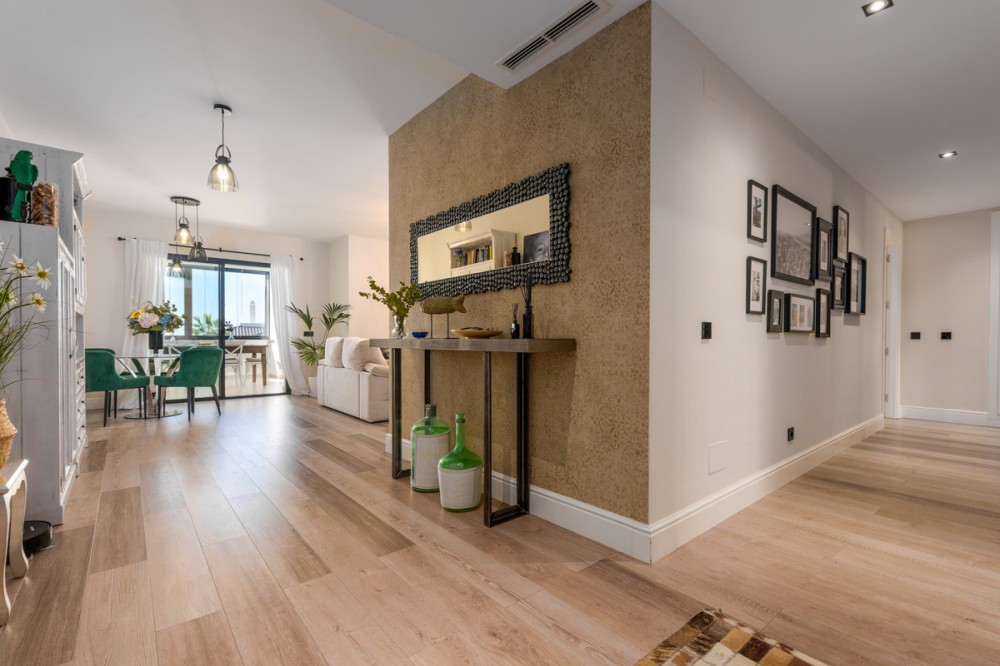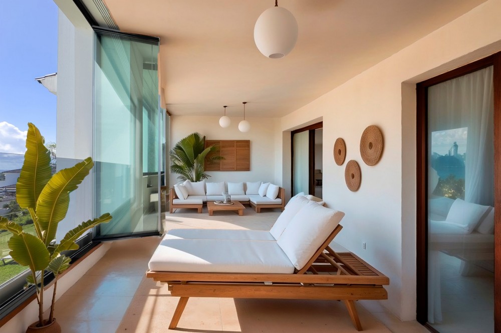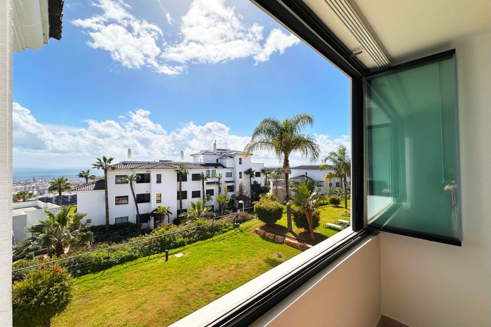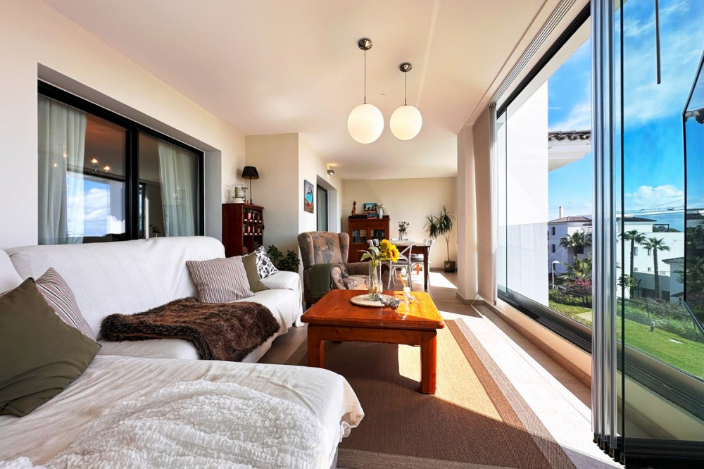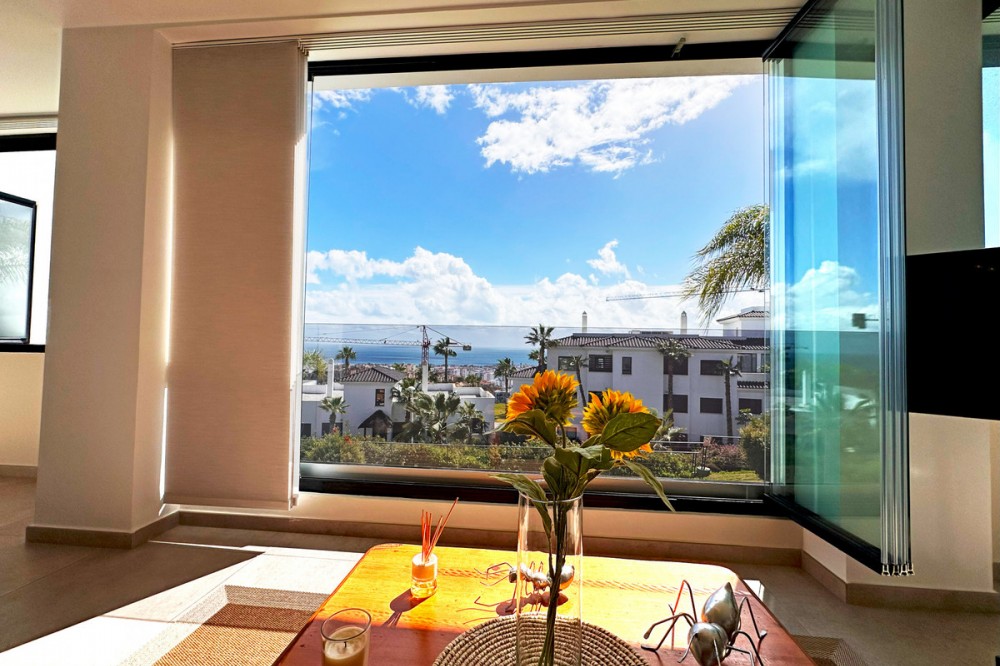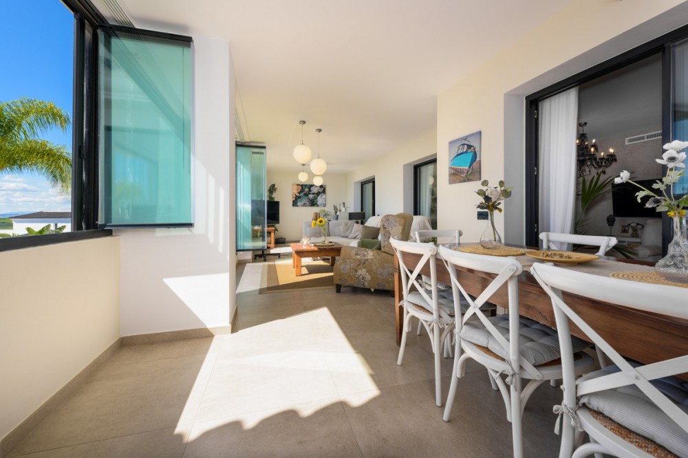 - We present this incredible apartment by an Andalusian and contemporary architect. This spacious home consists of 3 bedrooms and 2 full bathrooms, one of them en suite, a guest toilet with double sink, a large living room of almost 40m2 which has been minimized to make a large dressing room for the master bedroom. A state-of-the-art kitchen fully equipped with exclusive high-quality "Neff" appliances gives a modern and clean touch. We can add that from the secondary bedrooms are quite spacious (+13m2) we see Sierra Bermeja and from the master bedroom you can see some impressive sunrises with direct access to the terrace. Let's talk about the jewel of the apartment, a beautiful glazed terrace with Lumon and mosquito nets of almost 37m2 with wonderful views of the Mediterranean Sea and North Africa. The current owners live on the terrace, as they take advantage of the warm sun that covers that part of the property, although it would be ideal to dress it with some hammocks and modern terrace furniture and give it a summery touch. The property is sold with two parking spaces and a comfortable storage room. This property has been designed taking care of every detail to maximize your comfort, providing it with a modern Mitsubishi central air conditioning system, fireplace, floors, bathrooms and taps from “Porcelanosa” double glazing and windows from the “Cortizo” brand. In addition, it should be noted that within the residential complex there are two magnificent restaurants, a social club, a tennis / paddle club, and an impressive 1,000 M2 fully equipped gym, and immaculately maintained garden areas. The urbanization has 24/7 security with video surveillance and a concierge, and it is also a private and closed urbanization, with barrier access control. It features an infinity pool surrounded by spectacular tropical gardens and a second pool in phase II, with plans to open another pool in the near future. Accessibility is guaranteed with an elevator and facilities for people with reduced mobility.