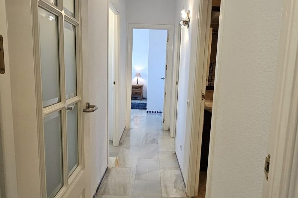 - Semi-penthouse Located on the fourth floor of a sought-after beachfront development, this bright and spacious apartment offers stunning, uninterrupted views of the Mediterranean Sea and the Estepona coastline. Thanks to its south-facing orientation, the home enjoys all-day sunshine, making it an ideal place for living or spending long stays by the sea. The property features a generous living-dining room with a fireplace and recently installed air conditioning, which opens directly onto a spacious, partially covered 85 m² terrace. This outdoor space is perfect for relaxing, sunbathing, or enjoying al fresco meals with unparalleled sea views. The kitchen is separate and fully equipped, with a renovated electrical system. From the terrace, also with recently renovated electrical system and plumbing, you can enjoy an open and unobstructed panoramic view. The home has three double bedrooms, all with built-in wardrobes. One of the bedrooms has direct access to the terrace. Two full bathrooms complete the layout. Sold fully furnished, ready to move into. The residential complex offers excellent communal areas: a communal pool, mature gardens, a tennis court, and a social area with a barbecue. It also has direct access to the promenade and the beach, and is just a few minutes' walk from the marina and the charming historic center of Estepona. Includes a parking space and storage room in a gated community with security. A unique property for both permanent residence and holiday investment.