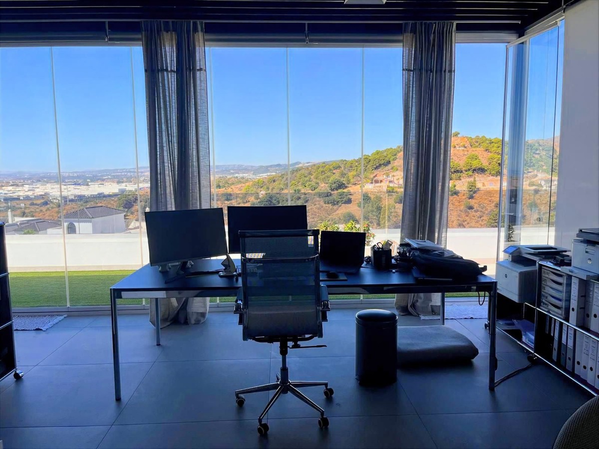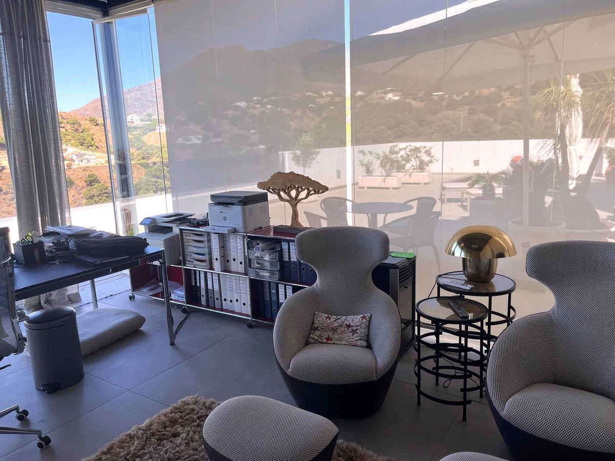 - Exclusive Penthouse in Mirador de Estepona Hills with Unmatched Panoramic Views Introducing a truly spectacular penthouse in the prestigious Mirador de Estepona Hills residential complex. Perfectly oriented to the southwest, this home offers breathtaking 360-degree views of the Mediterranean Sea, Gibraltar, the African coastline, and Marbella’s iconic skyline. Originally designed with three bedrooms and two bathrooms, the property has been meticulously transformed to create a contemporary and versatile layout, featuring approximately 200 m² of interior living space and 200 m² of surrounding terraces. Upon entering, you are welcomed into an elegant open-plan concept: • A spacious designer kitchen to the right combines style and functionality. • To the left, a walk-in dressing room provides convenience and storage. • Behind the kitchen, a generous utility/storage room offers additional flexibility. From the kitchen, you step into a large office space that flows seamlessly onto a private terrace, perfect for installing a jacuzzi or plunge pool, with unparalleled views of Sierra Bermeja. To the left, a bright dining area enclosed with glass curtains invites natural light and panoramic views, providing access to one of the most impressive wrap-around terraces on the Costa del Sol – a perfect setting for year-round outdoor living. The sleeping area, located straight ahead from the entrance, comprises two bedrooms and two bathrooms, including a master suite with its own en-suite bathroom. Additional features include two private parking spaces, two storage rooms, and direct lift access to the penthouse, ensuring absolute privacy and exclusivity. A unique home where luxury meets tranquility – the perfect retreat in the heart of the Costa del Sol.