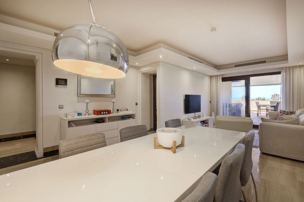 • Elegant 2-Bedroom Apartment for Sale in Bahía de la Plata – Frontline Beach, Estepona Bright Two Bedroom First-Floor Corner Apartment with Sunny Terrace, Sea Views & Privacy in Prime Beachfront Complex, Bahía de la Plata. Welcome to this beautifully maintained 2-bedroom, 2-bathroom apartment located on the 1st floor of the exclusive Bahía de la Plata development — one of Estepona’s most sought-after frontline beach communities. With a southwest orientation, this spacious apartment enjoys sunshine throughout the afternoon and beautiful views over the tropical gardens and partial sea views. The open-plan living and dining area flows effortlessly onto a generous covered terrace, perfect for relaxing or entertaining. The master bedroom features an en-suite bathroom and terrace access, while the second bedroom and bathroom offer comfort and privacy for guests or family. The apartment is sold with a private underground parking space and a storage room. Bahía de la Plata is a gated, secure complex with direct beach access, outdoor and indoor pools, gym, spa, 24-hour security, and beautifully landscaped gardens. Just a short walk from Estepona town, restaurants, shops, and all amenities. Whether you're looking for a permanent residence, a holiday home, or a smart investment on the Costa del Sol, this apartment is a fantastic opportunity in a prime beachfront location. The location is unbeatable, within walking distance to the beach, local restaurants, and the famous Kempinski Hotel. Estepona’s charming old town and the vibrant marina are just a short drive away, and Marbella and Puerto Banús can be reached in under 20 minutes. This apartment is a rare opportunity not to be missed by those looking for a luxurious holiday home, a secure investment, or a permanent residence by the sea.