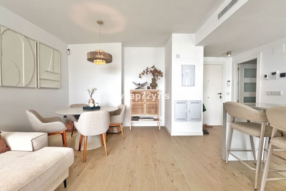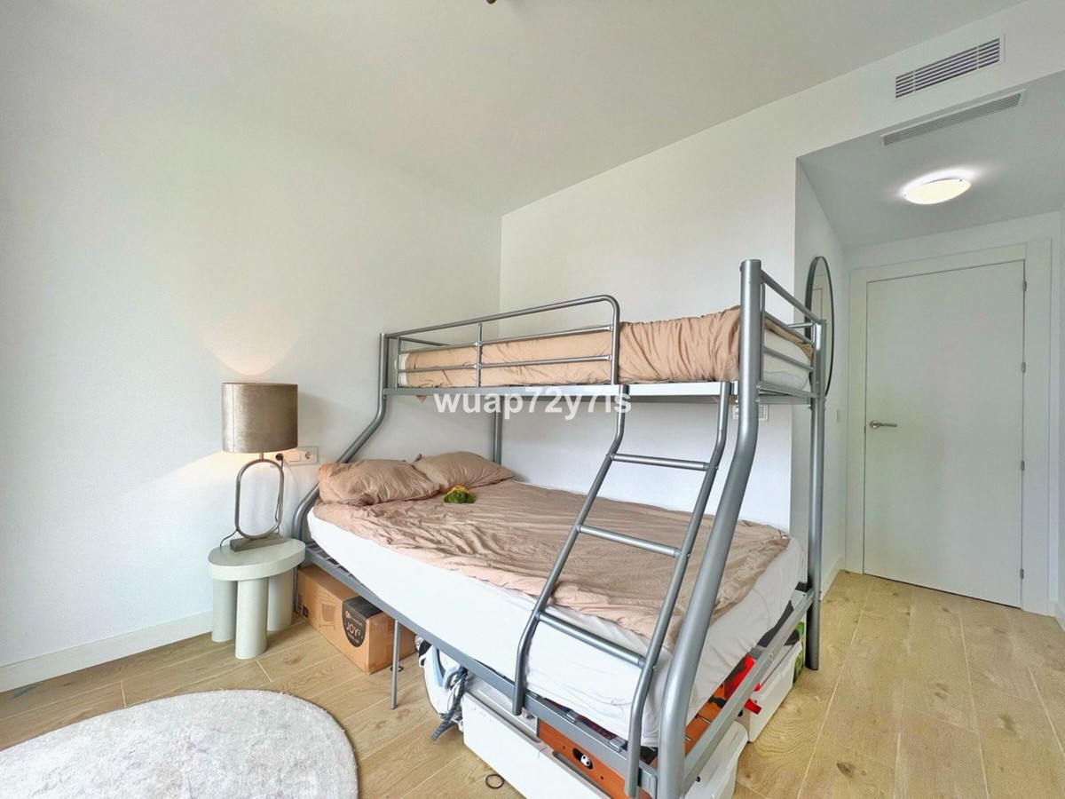 • Two-Bedroom Apartment with Spacious Terrace and Sea Views in One Eighty, Estepona We are delighted to present this elegant ground-floor apartment in the prestigious One80 residential complex. With two bedrooms and two bathrooms, it offers the perfect balance between comfort and style, making it ideal both for permanent living and as a holiday retreat by the sea. Upon entering the apartment, you are welcomed by a bright and spacious living room that combines a comfortable lounge with sofas, a dining area, and a fully equipped open-plan kitchen. Large sliding doors flood the space with natural light and provide direct access to the generous terrace. To the left lies the first bedroom with its own en-suite bathroom, while further along you will find the master bedroom, also featuring an en-suite and direct access to the terrace. The true highlight of this property is its very large covered terrace, which connects all rooms, including the living room, kitchen, and both bedrooms. This exceptional outdoor space is designed for enjoying the Mediterranean lifestyle, with a lounge area furnished with sofas, a dedicated barbecue space, and a private section with natural grass where you can create your own green garden corner. From here, you can enjoy beautiful sea views, making the terrace a perfect place to relax or entertain guests throughout the year. The One80 complex provides excellent facilities such as an outdoor swimming pool, a modern gym, and a covered area with special flooring designed for yoga and Pilates. Its location is equally appealing, just three minutes from Colegio San Juan XXIII and Estepona Football Center, with restaurants and supermarkets within walking distance. The beach and the Elba Estepona Gran Hotel & Thalasso Spa are only five minutes away, while Valle Romano Golf Club can be reached in ten minutes and Estepona Golf in fifteen. Estepona’s charming old town is also only fifteen minutes away, the Sotogrande port twenty minutes, Puerto Banús twenty-five minutes, and Marbella’s historic center just thirty-five minutes by car. This apartment is the perfect choice for those who value comfort, spacious terraces, sea views, and life in a modern residential complex with excellent facilities in a prime location.