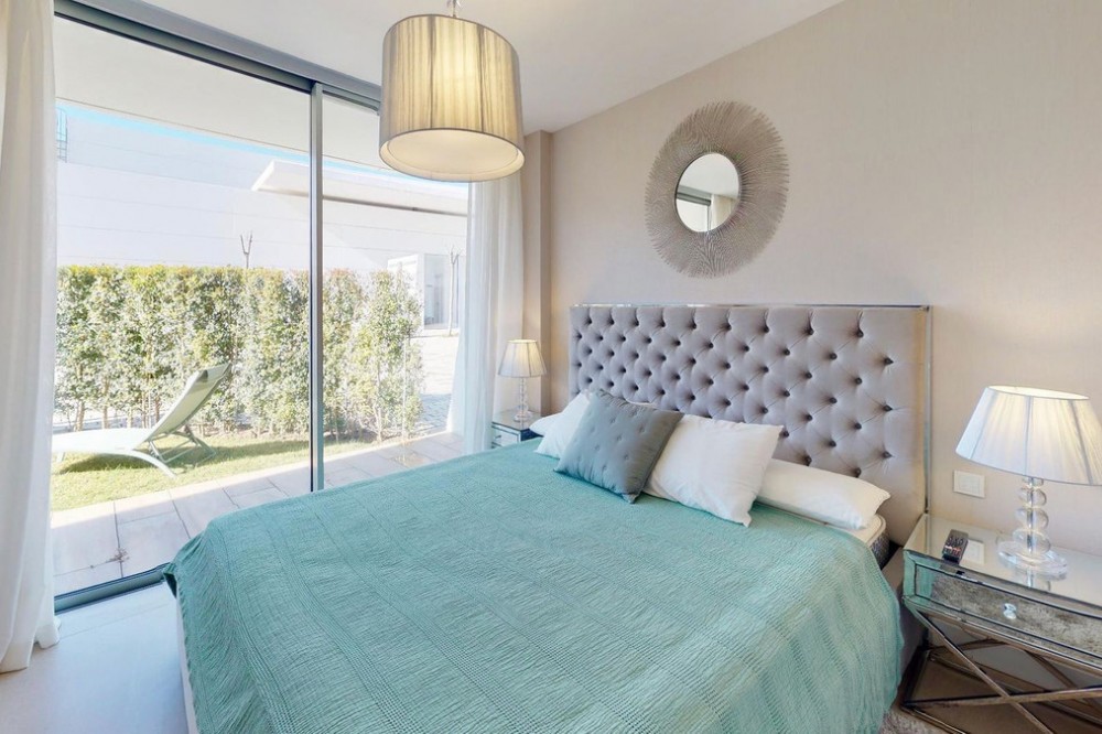 - This charming ground floor flat is located in an exclusive development in the beautiful coastal town of Estepona, known for its Andalusian charm, golden sandy beaches and relaxed atmosphere. This home features two bedrooms and two bathrooms, a spacious living room and a generous terrace. The bedrooms open onto a beautiful private garden. The integration of indoor and outdoor spaces allows you to enjoy the Mediterranean climate and views over the lush gardens of the urbanisation. Equipped with the latest amenities, the flat features state-of-the-art home automation systems and aerothermal technology to ensure energy efficiency and comfort. The kitchen is equipped with Gaggenau appliances, offering a high quality culinary experience. The materials used throughout the property are first class, which is reflected in every corner. Furthermore, this flat comes with two parking spaces and a storage room to provide additional storage space and convenience. The development offers a wide range of luxurious amenities such as a spa for total relaxation, a first class gym to keep you active, an indoor swimming pool for your all-season enjoyment and a communal pool for socialising with other residents. The coworking area is perfect for those looking for a quiet and productive workspace. Security is a priority, with a 24-hour security team available, providing peace of mind for residents and their belongings. In addition, direct access to the beach from the development allows you to enjoy the Mediterranean Sea in a matter of seconds, providing the seaside living experience you have always dreamed of. This ground floor flat in Estepona is the perfect combination of luxury, comfort and an exceptional location in a coastal town with a unique and charming atmosphere. Don't miss the opportunity to live life by the sea at its best in this privileged enclave on the Costa del Sol.