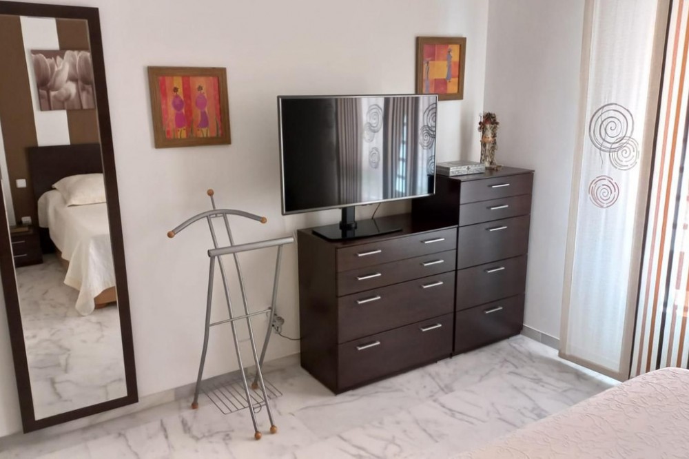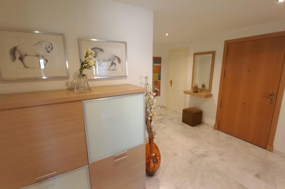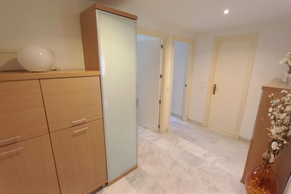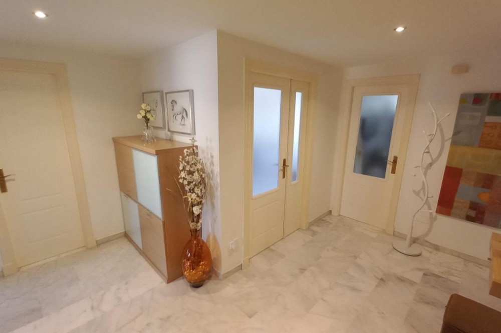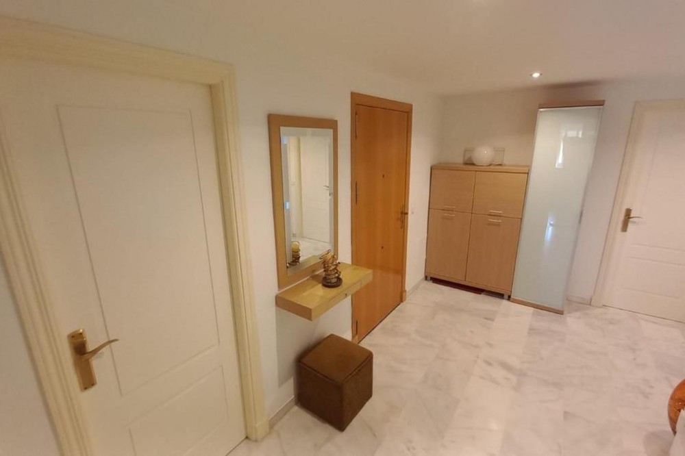 - Beautiful 3-Bedroom Apartment in Prime Estepona Location – Walking Distance to the Beach and Marina Situated within a secure gated community, this bright and spacious apartment offers the perfect blend of comfort, privacy, and convenience — just a 10-minute walk from the beach and Estepona’s marina. The property boasts open panoramic views of the swimming pool and landscaped gardens and is part of a peaceful community with only two neighbours per floor. Inside, a welcoming entrance hall leads to three generous bedrooms with fitted wardrobes and two bathrooms, including a large en-suite in the master bedroom. One of the bedrooms features a small terrace enclosed with glass curtains, providing a cozy and versatile space. The apartment includes centralized air conditioning in the bedrooms and living area, a fully equipped independent kitchen, and a spacious living-dining room with access to the main terrace — also enclosed with glass curtains, ideal for year-round enjoyment. Residents can enjoy two outdoor swimming pools surrounded by beautifully maintained gardens. A private parking space is included. This is an exceptional opportunity to own a high-quality home in one of Estepona’s most desirable areas, close to all amenities including schools, supermarkets, cafés, pharmacies, and leisure options, with easy access to the A7 motorway. Perfect as a permanent residence, holiday home, or investment.