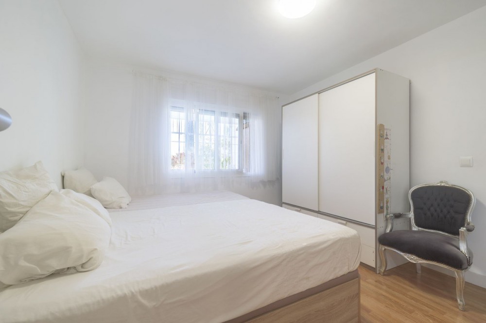 • Bright apartment with a large terrace and direct access to the garden. If you are looking for a spacious, quiet home filled with natural light, you will love this apartment. It has two large bedrooms, one with an en-suite bathroom, dressing room and wooden floor, plus a second full bathroom for added convenience. The 21m² living room is perfect for enjoying with family or friends, with direct access to a south-facing terrace of 30m², ideal for relaxing in the sun or enjoying al fresco dinners. From the terrace, you have direct access to the well-maintained and accessible communal garden. The property includes an independent kitchen that is open to the living-dining room, a storage room and an entrance porch with storage space, which could even be transformed into a third bedroom, as other neighbors have done. The gated community is very quiet, with respectful neighbors all year round and has two swimming pools, one of which is heated during the winter, and water included in the community fees. In addition, it has easy parking and is close to supermarkets, restaurants and a pharmacy. 10 minutes from Estepona town, 10 minutes from San Pedro and 45 minutes from Malaga airport. A home with all the comforts, perfect for living all year round or as a second residence. The apartment does not have a tourist license, nor does the community allow new licenses.