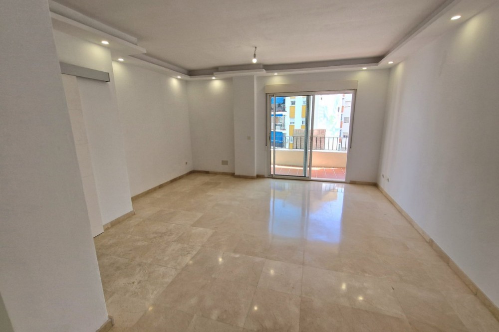 - Discover this bright and beautifully renovated 105 m² apartment situated in the very heart of Estepona. Enjoy the convenience of having everything at your doorstep—supermarkets, cafés, restaurants, schools, and essential services—all within a vibrant and comfortable urban setting. With an ideal southeast orientation, the property offers excellent natural light throughout the day. It features a spacious living-dining area, three well-proportioned bedrooms, and two bathrooms—one complete with a modern walk-in shower and the other a practical guest toilet. The apartment also includes a fully furnished kitchen, separate laundry room, an 8 m² terrace, elegant marble floors, and pre-installation for air conditioning. A private parking space is included, adding extra convenience in this central location. Perfect as a family home, holiday residence, or investment opportunity, this apartment combines comfort, style, and an unbeatable location.