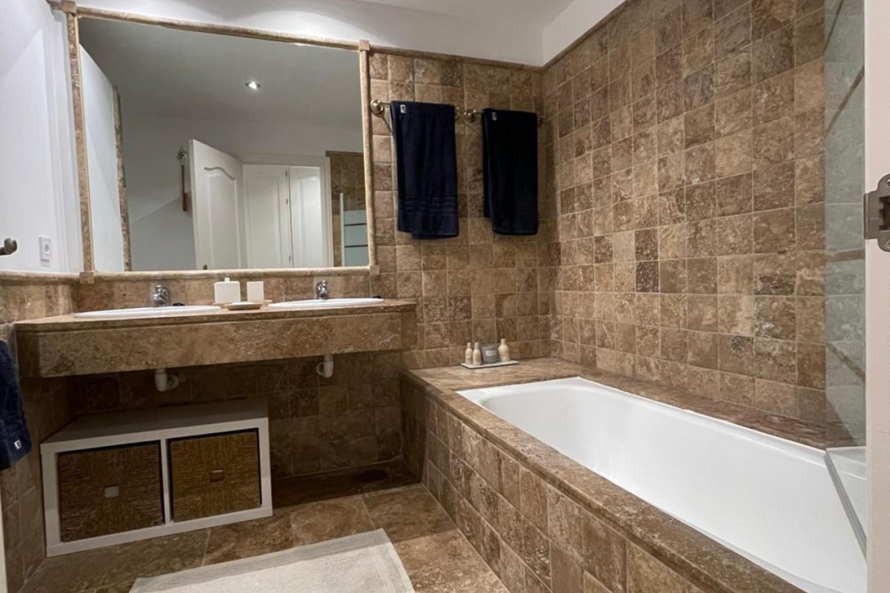 - Presenting an elegant, recently built apartment located in the prestigious Benatalaya development, in the eastern area of Estepona, Málaga. Boasting a privileged frontline golf location and surrounded by all necessary amenities, this property stands out for its comfort and excellent connectivity to public transport as well as the main commercial, educational, and leisure areas of the city. The apartment, with a built area of 140 m² (99 m² of interior space and 41 m² of a spacious private terrace), offers 2 bedrooms and 2 full bathrooms. The interior is characterized by its brightness and functional layout, featuring a spacious living room, fully equipped kitchen, built-in wardrobes, and high-quality finishes such as double-glazed windows and electric shutters. Residents enjoy an array of extraordinary amenities within a gated and secure community, including outdoor and indoor communal swimming pools, gym, sauna, jacuzzi, mature landscaped gardens, and a nearby children's playground. The entrance is equipped with a concierge, elevator, and adapted access, as well as communal garage and storage room. Security is ensured through 24-hour surveillance and assistance, as well as an access control system. This property represents an excellent opportunity for those seeking a high quality of life next to the golf course, surrounded by well-maintained gardens and a tranquil atmosphere, without sacrificing proximity to restaurants, schools, and shops. Its excellent condition, golf and garden views, and location close to all amenities make this apartment an ideal option both as a permanent residence and as an investment.