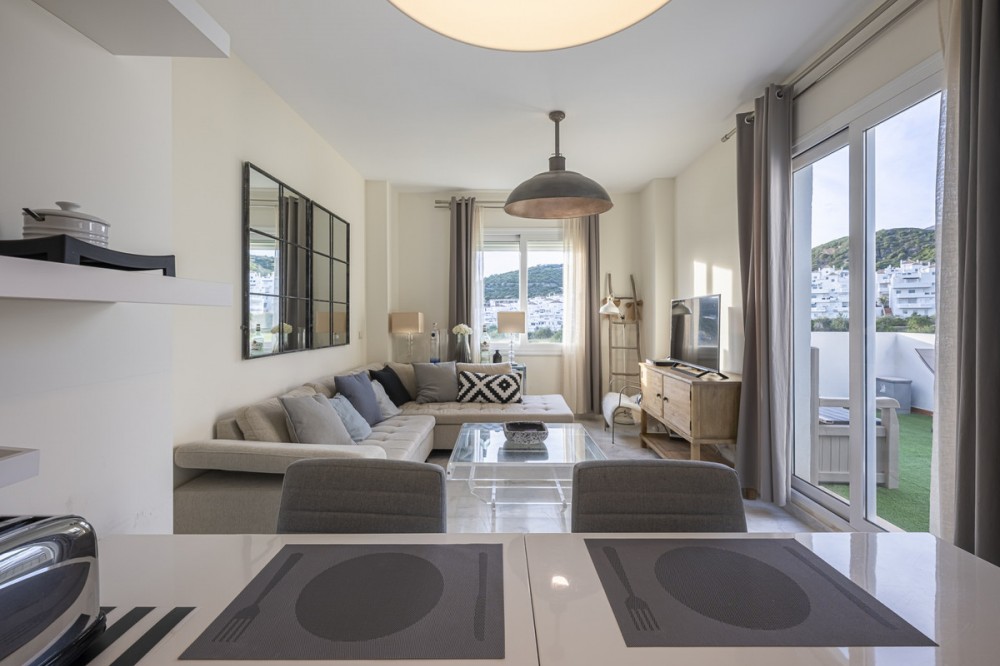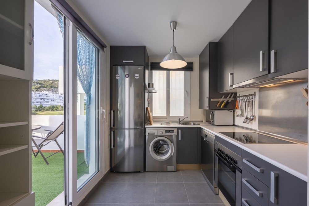 - This bright and stylish two-bedroom apartment features a spacious master bedroom with an ensuite bathroom, a modern fully equipped kitchen, and a comfortable open-plan living area that leads onto a southwest-facing terrace with fantastic views over the Valle Romano Golf Course. Ideally located just moments from the supermarket and the golf clubhouse, the property offers exceptional convenience. It is only a 10-minute drive from Estepona, giving you quick access to the beach, marina, and vibrant town centre. The apartment is sold fully furnished with high-quality, contemporary furniture and is presented in excellent condition throughout. Both bedrooms are bright and airy, making this a perfect home, holiday retreat, or rental investment on the Costa del Sol.