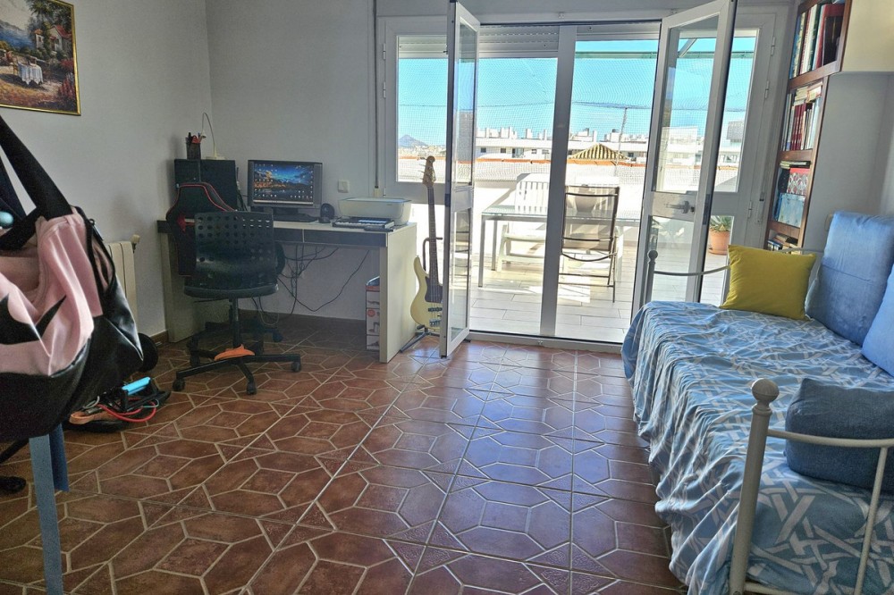 - Fantastic Location in the Heart of Estepona! Less than a 10-minute stroll to the beautiful beach, seafront promenade, and the charming historical Old Town of Estepona, this spacious duplex penthouse offers the very best of town living with shops, restaurants, and all amenities right on your doorstep. Situated on the 5th floor of a well-kept building with a lift, this home boasts an impressive 55m² private terrace with open views across the rooftops of Estepona towards the mountains, plus glimpses of the sea. The terrace is the perfect space for dining, entertaining, BBQs, or simply soaking up the sun. The property is set within a friendly, well-maintained community featuring a pretty garden and a large swimming pool, with very reasonable community fees of just €75 per month. Inside, the penthouse is generous in size and thoughtfully laid out: On the main floor you’ll find a spacious kitchen with room for a dining table, a guest WC, a cozy living room, an enclosed terrace currently used as an office/fourth bedroom, and access to the large open terrace. Upstairs, the accommodation includes a large principal bedroom, two further bedrooms, and two bathrooms. Additional highlights include ample storage space and an enclosed private parking space included in the price. The property is presented in good condition and would benefit from some updating, offering excellent potential to personalise and increase its value. Spacious penthouses in such a prime location are rarely available at this price – this is a fantastic opportunity not to be missed!