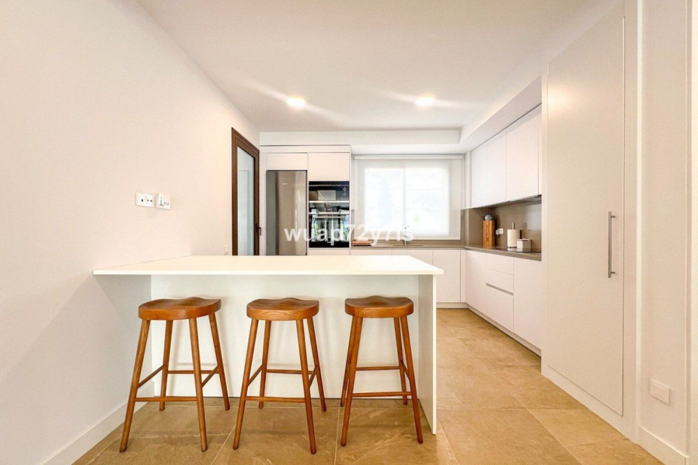 - 4-Bedroom Ground Floor Apartment in the Prestigious Las Mesas Area, Estepona Stepping inside this elegant ground-floor residence, you’re welcomed by a thoughtful and spacious layout. To your right lies a fully equipped, generous kitchen featuring a stylish breakfast bar with bar stools — perfect for casual mornings or hosting friends. To the left, the interior opens into a comfortable dining area that seamlessly connects to the inviting living room. From here, large sliding doors draw you toward a spectacular 92 m² terrace — half covered for year-round comfort, half open to enjoy the Andalusian sun. It’s an ideal setting for outdoor dining with a glimpse of the sea. Moving from the living room into the quieter wing of the apartment, you’ll find four bedrooms and three bathrooms. The master bedroom is impressively spacious and comes with its own en-suite bathroom. Three of the bedrooms enjoy direct access to the terrace through floor-to-ceiling windows, filling the rooms with natural light and offering a wonderful sense of openness and fresh air. Set within a beautiful landscaped park environment, this apartment is located in the highly desirable Las Mesas district of Estepona. At the heart of the neighborhood lies the Las Mesas Sports Club and Park, offering padel courts, a well-equipped gym, and peaceful walking paths. The property sits just three minutes by car from Estepona’s Marina (Puerto Deportivo) and 5–7 minutes from the charming historic center. Also within three minutes is the Pabellón Municipal de Deportes , a full sports complex. Everyday convenience is excellent, with Mercadona and Lidl supermarkets only 2–3 minutes away. This location combines tranquility, green surroundings, and superb access to Estepona’s key attractions and amenities.