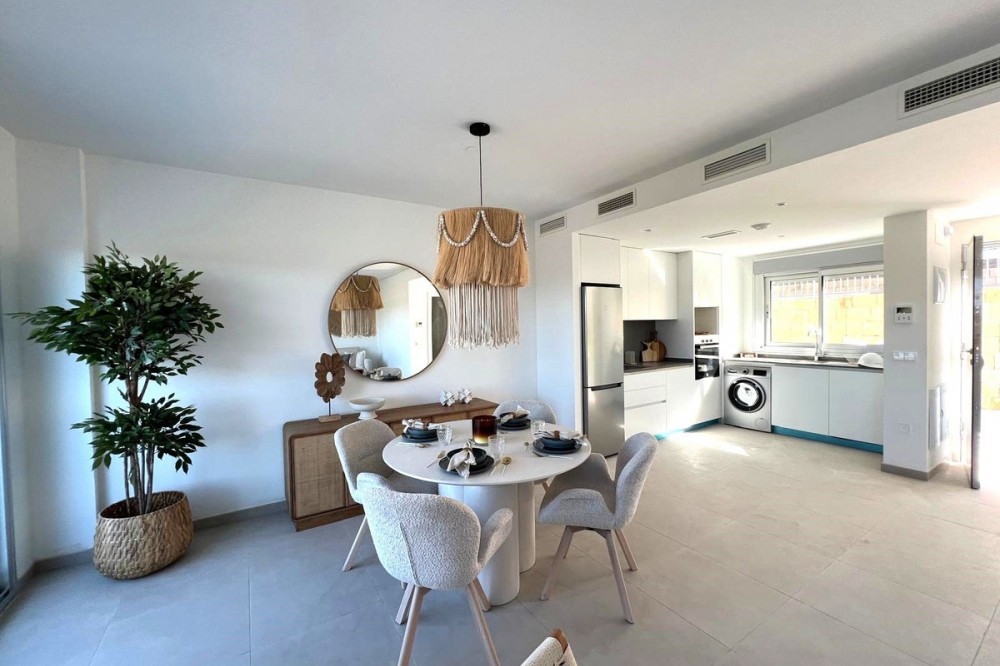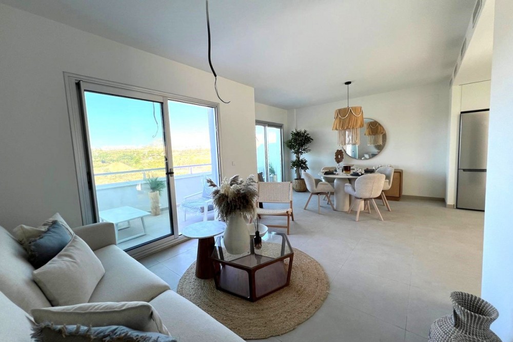 - Stunning Modern Apartment with Spacious Terrace – New Golden Mile Price: €485.000, Location: Cancelada, Estepona IMAGES OF SHOWFLAT IN THE SAME PROJECT Discover the perfect blend of modern design, comfort, and a prime location. This contemporary apartment, situated in one of the most sought-after areas of the New Golden Mile, offers a luxury lifestyle within walking distance of the charming village of Cancelada and just minutes from the Mediterranean beaches. Key Features Bright & Spacious: Boasting a generous internal living space of 90 m², the open-plan layout is designed to maximize light, featuring floor-to-ceiling windows that create a seamless flow between indoors and outdoors. Outdoor Living: Enjoy the Mediterranean sun on the large 26.7 m² private terrace. This space serves as a perfect extension of the living area, ideal for al fresco dining or lounging. Modern Kitchen: A fully equipped, sleek kitchen with high-quality appliances, perfectly integrated into the main living space. Bedrooms: 3 well-proportioned bedrooms with fitted wardrobes. The master suite features a stylish en-suite bathroom. Extras: Equipped with hot and cold air conditioning, premium flooring, and includes a private parking space and storage unit. Complex Amenities The property is located within an exclusive, gated community known for its excellent facilities: Beautifully landscaped tropical gardens. Large communal swimming pool with sunbathing areas. Located in a secure, quiet, and well-maintained environment. Location Positioned between Marbella and Estepona, this property offers the best of both worlds. You are within walking distance of local amenities including supermarkets, pharmacies, and top-rated restaurants in Cancelada. Some of the Costa del Sol's finest golf courses and famous beach clubs are just a short drive away. An ideal property for permanent living, a luxury holiday home, or a solid investment with high rental potential.