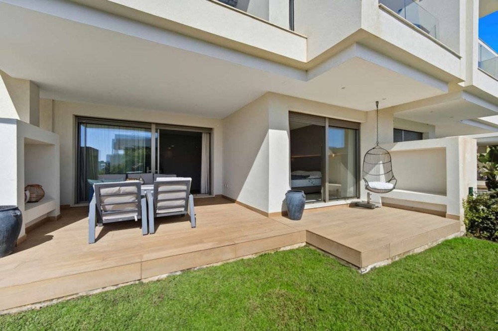 - Welcome to this elegant and spacious apartment located in the highly sought-after area of Las Mesas, Estepona, just a short walk from the city centre, port, beaches, and all amenities. This modern home combines contemporary design with comfort and practicality, making it perfect as a permanent residence, holiday home, or investment opportunity. Short-term rentals are approved by the community. Built in 2020, the Las Mesas urbanisation offers excellent communal facilities, including a large swimming pool, spacious gym, and beautifully maintained gardens. Las Mesas offers excellent connectivity to Estepona’s historic old town and marina, both within walking distance. Nearby are a dog park, sports facilities such as paddle courts and a fitness centre, and shops, all in a peaceful and private setting. Marbella is only 20 minutes away by car, and Málaga Airport can be reached in under an hour via either the A-7 coastal highway or AP-7 highway. The property is situated on an elevated ground floor, providing additional safety and privacy. Upon entering, you are welcomed by a bright and spacious living room filled with natural light and furnished with high-end furniture. The open-plan kitchen is fully equipped with Siemens appliances, while the laundry and utility room also features a Siemens washing machine and dryer. The master bedroom, complete with an en-suite bathroom, is spacious and features built-in wardrobes. The second bedroom is also generously sized, ensuring each part of the home feels open, warm, and inviting. All windows are fitted with electric blinds. The south-facing terrace offers plenty of sunshine and comfort, perfect for relaxing or dining outdoors. Both parking spaces and storage rooms are conveniently accessible by stairs or lift directly from the street floor level. The property was designed for energy efficiency and built to high construction standards, with features such as insulation and soundproofing, hot and cold air conditioning, and underfloor heating in the bathrooms. Each room can be individually climate-controlled for maximum comfort. Included in the sale are two underground parking spaces, two storage rooms, and all furniture, allowing you to move in straight away and start enjoying your new home.