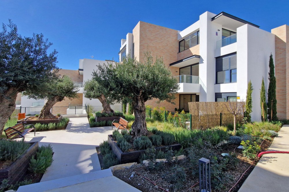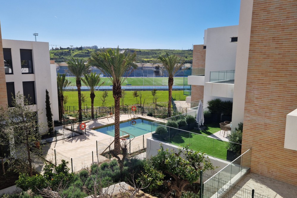 • Fantastic brand new 3-bedroom apartment on the ground floor of the newly built complex in Residencial Senda, in the town centre of Estepona. It is a modern gated complex with only 34 apartments, in a privileged area next to the new Auditorium, with everything within walking distance to supermarkets, schools, restaurants, green areas and sports centres without having to rely on a car. The beach, the promenade and the charming old town of Estepona are just a few minutes' walk away. It also has easy access by road to Marbella or the airports of Malaga and Gibraltar via the A7 motorway. The property has three bedrooms and two bathrooms, one of which is en suite, a living room and a modern open-plan kitchen with direct access to a large terrace and a 27 m² private garden, ideal for enjoying and relaxing outdoors. It also includes a parking space and a storage room. The communal areas of Residencial Senda feature a swimming pool surrounded by beautiful gardens designed by landscape architect Mathieu Lèbre, a fitness area and recreational areas.