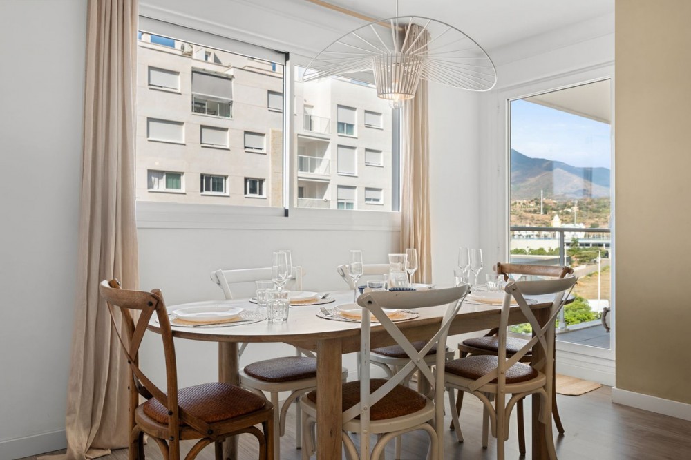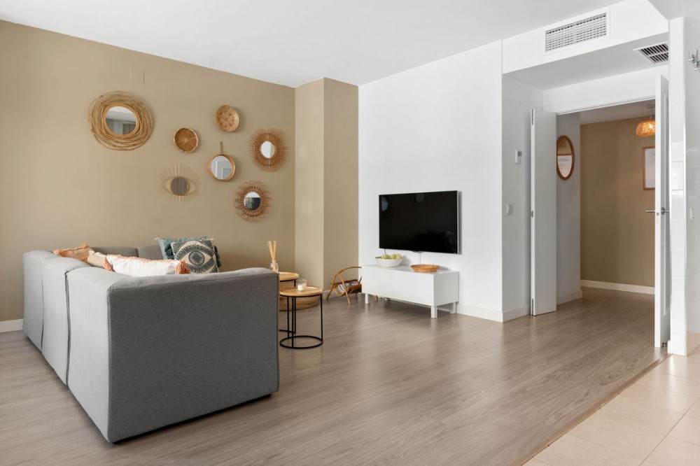 - Spacious and bright apartment in the heart of Estepona Located in a quiet, yet central area of Estepona, this modern and fully equipped apartment offers the perfect combination of comfort, space, and location. Just a 10-minute walk from the beach and the charming town center with its cozy restaurants and characteristic streets. The apartment is situated on the 4th floor and is accessible by elevator. The layout is spacious and practical, featuring a bright living and dining area and a fully equipped kitchen. The property includes: • 3 bedrooms o Master bedroom with en-suite bathroom o Second bedroom with a double bed o Third bedroom with bunk beds (ideal for children or guests) • 2 bathrooms, including a bathtub • Fully equipped kitchen with dishwasher, oven, and induction hob • Air conditioning (hot/cold) in all rooms • Rental license A major advantage is the private parking space in the garage, making city living extra comfortable. Both the building and the apartment are wheelchair accessible. In short: a move-in ready, spacious property in a prime location. Ideal as a permanent residence, holiday home, or investment.