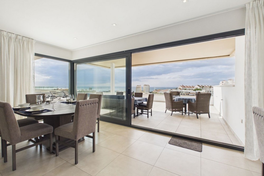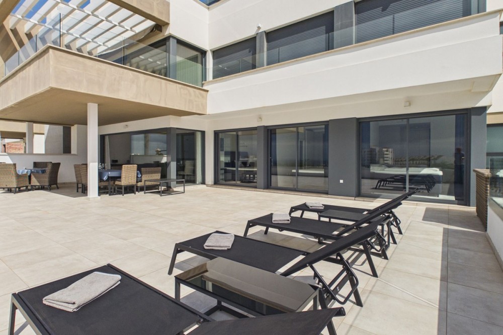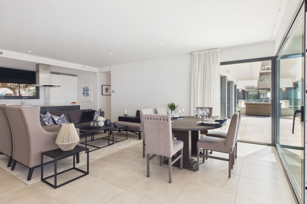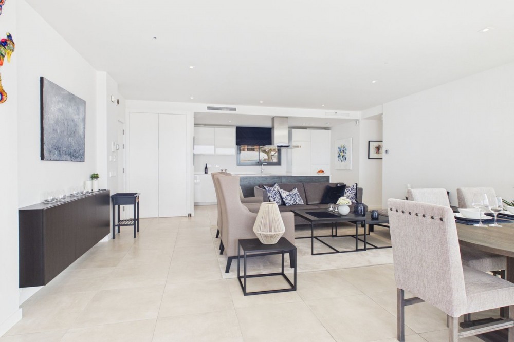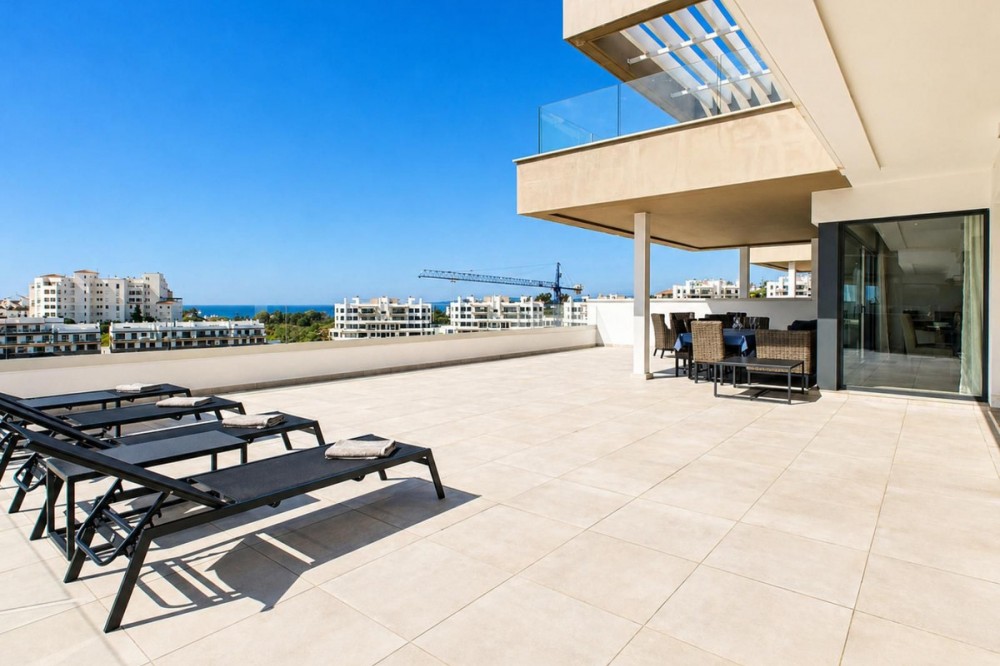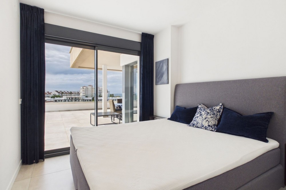 • Experience coastal living at its finest in this stunning 4-bedroom, 3-bathroom luxury apartment, designed to impress at every turn. Boasting breathtaking sea views from three of the bedrooms and the spacious living area, this home offers an exceptional setting—whether you're unwinding indoors or taking in the scenery from the expansive terrace. The generous terrace is ideal for both sunbathing and entertaining, with covered areas providing shade and comfort throughout the day. Completed just five years ago, the apartment showcases high-quality finishes and contemporary design, including a stylish open-plan kitchen that perfectly balances elegance and functionality. Additional features include two underground parking spaces and a private storage room. Residents also enjoy access to superb on-site amenities, including two fully equipped gyms, a large adult swimming pool, and a separate children’s pool. Ideally located just a short distance from the port and within easy walking reach of the town, this property offers the perfect blend of tranquility and convenience.