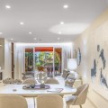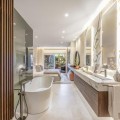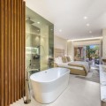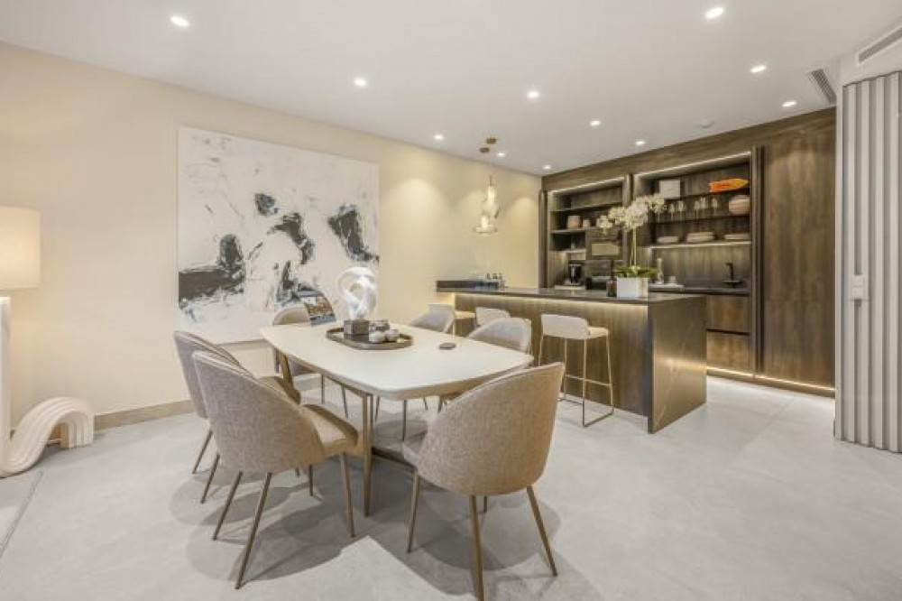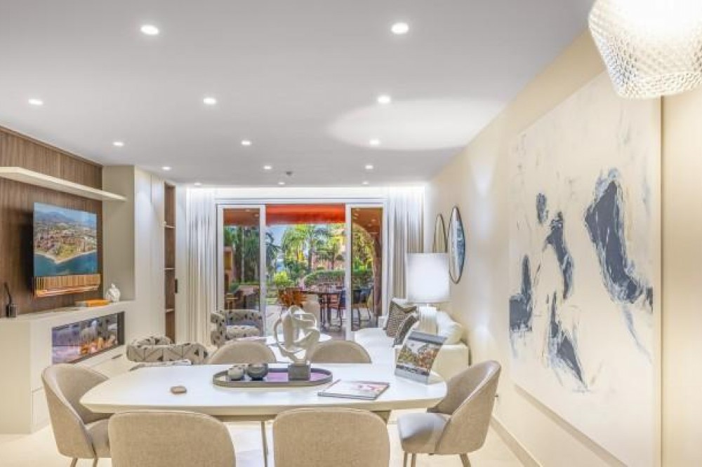 - Dit prachtig gerenoveerde appartement op de begane grond, gelegen in een van de meest prestigieuze strandwijken van Estepona, biedt een verfijnde kustbeleving met een rustig uitzicht over weelderige, aangelegde tuinen. Het appartement is volledig gerenoveerd volgens de hoogste normen en combineert een eigentijds design met uitzonderlijk comfort in een omgeving die zowel privé als exclusief aanvoelt. Het appartement biedt een royale woonoppervlakte van 142 m², aangevuld met een indrukwekkend privéterras van 60 m² dat de leefruimte naar buiten uitbreidt. Het open interieur is zorgvuldig ontworpen om licht en ruimte te maximaliseren, waardoor een naadloze verbinding ontstaat tussen de woonkamer, eetruimte en het terras. Elegante vloeren, op maat gemaakte afwerkingen en zorgvuldig geselecteerde materialen geven de woning een verfijnde maar gastvrije sfeer, ideaal voor zowel permanent wonen als luxe vakanties. De designkeuken is een opvallend kenmerk, uitgerust met hoogwaardige apparatuur en innovatieve oplossingen die stijl en functionaliteit combineren. Hoogwaardige details zoals een onzichtbare inductiekookplaat, dubbele vaatwasser, geïntegreerde Thermomix en een verborgen wasruimte weerspiegelen de aandacht die aan elk element van de renovatie is besteed. De woonkamer wordt verfraaid door een elektrische open haard en een Bang & Olufsen geluidssysteem, waardoor een verfijnde ruimte ontstaat om te ontspannen en gasten te ontvangen. Alle drie de slaapkamers zijn ontworpen als privétoevluchtsoorden, elk met een eigen en-suite badkamer. Op maat gemaakte kledingkasten, een ruime inloopkast en spa-achtige badkamers met voorzieningen zoals een vrijstaand bad en Japanse toiletten dragen bij aan het gevoel van ingetogen luxe. Vloerverwarming in het hele appartement zorgt voor comfort het hele jaar door, terwijl dubbele beglazing zowel de isolatie als de rust verbetert. De woning is gelegen in een afgesloten complex aan het strand, bekend om zijn weelderige tropische tuinen, uitzonderlijke privacy en vijfsterrenfaciliteiten. Bewoners genieten van 24-uursbeveiliging, directe toegang tot het strand en de boulevard, meerdere buitenzwembaden, een verwarmd binnenzwembad, volledig uitgeruste fitnessruimtes en sauna's. Verschillende hoogwaardige restaurants bevinden zich op loopafstand, waardoor dit een ideale locatie is voor wie op zoek is naar een ontspannen maar verfijnde levensstijl aan zee. De woning wordt gecompleteerd door een ondergrondse parkeerplaats en een privéberging, wat het comfort verder verhoogt. Dit appartement biedt een zeldzame kans om een volledig gerenoveerde woning aan het strand te bemachtigen in een van de meest exclusieve woonwijken van Estepona, perfect geschikt voor veeleisende kopers die op zoek zijn naar luxe, comfort en een onovertroffen locatie aan de kust.