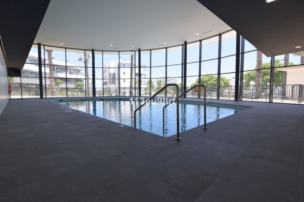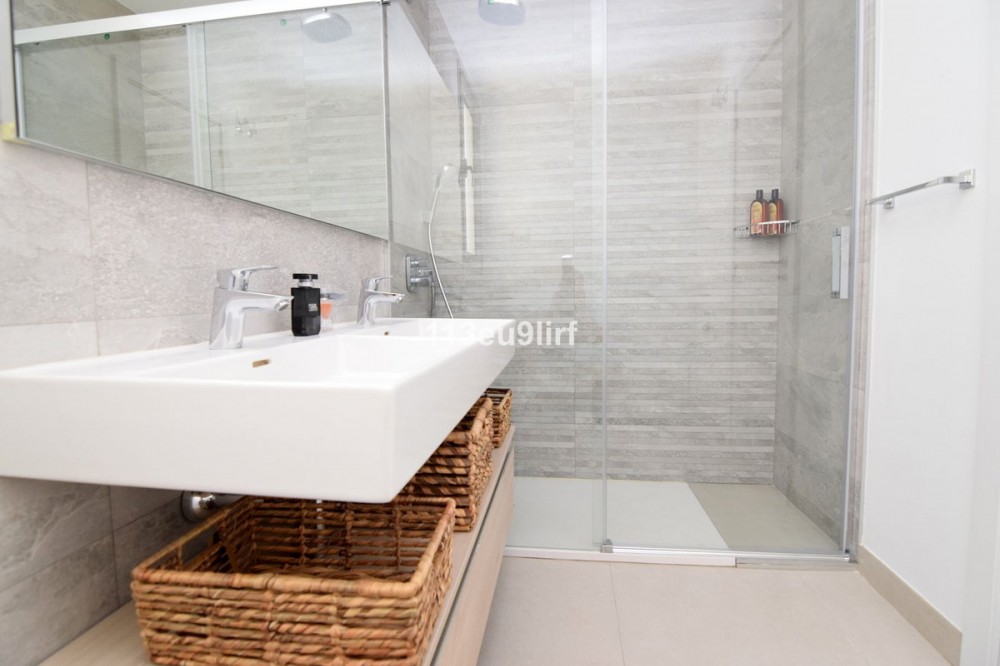 - Situated in Las Mesas, just outside the center of Estepona, this spacious luxury apartment offers peace and tranquility but is still close to the beach, port and city center. It consists of a large living/dining room, a fully equipped kitchen with adjacent utility room, the en suite master bedroom and two more bedrooms sharing a shower room. Additionally there is a covered front terrace with sea views and a small patio at the back. Underground parking space for one car and storage room. The complex with video surveillance is extremely well maintained, with tropical gardens and a beautiful pool. Heated indoor pool and gym (400 meter from the apartment). Air conditioning hot & cold, high speed internet. From the apartment it only takes 15 minutes to walk to Estepona port and the beach and 10 minutes to a large supermarket.