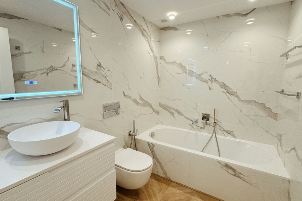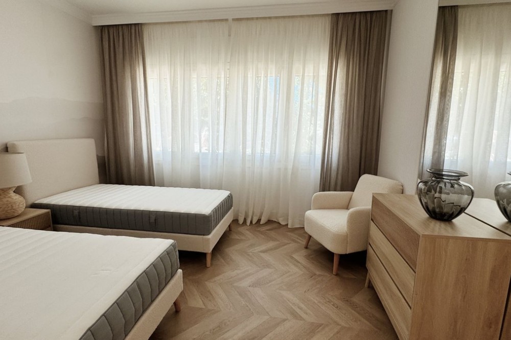 • A magnificent apartment for sale in the prestigious residential complex, located on the first line of the sea. This spacious property includes three bedrooms and two bathrooms, ideal for comfortable living. The apartment has been recently renovated and is decorated in a modern style using high-quality materials and stylish design solutions. Key features of the apartment: Location: First line of the sea, offering incredible sea views and easy access to the beach. Area: Spacious rooms that allow for a cozy and functional environment. Bedrooms: Three cozy bedrooms with large windows that fill the rooms with natural light. Bathrooms: Two modern bathrooms equipped with the latest plumbing and elegant finishes. Interior: Recent renovation in a modern style, with a design considered according to the latest interior trends. Complex: Prestigious residential complex with well-maintained grounds, a swimming pool, green areas, and 24-hour security. This apartment is the perfect choice for those who value comfort, style, and a privileged location. Living here, you will enjoy all the benefits of coastal living in one of the most beautiful places. Parking space № E11, storage room №10