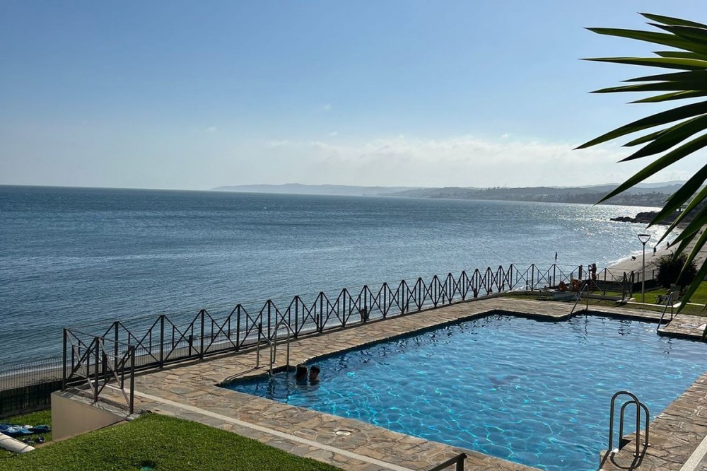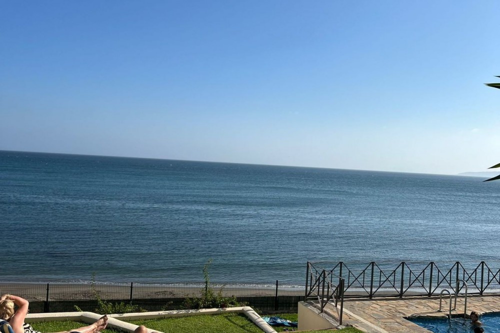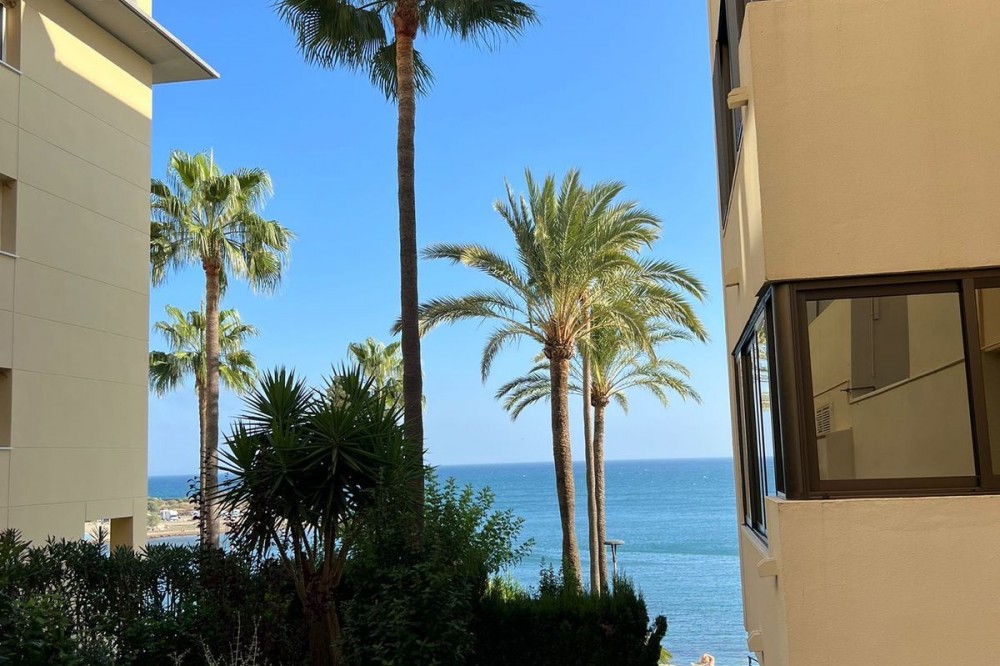 • Best location in Estepona beachfront we offer this fantastic 2 bed apartment with comunity pool and gardes and sea views from the terace at 10m meters fro the wonderful beach near the famus playa del Cristo bay wit ots new luxurious cocktails bars and beach bars with live music and great summer animation. This beachfrontline complex has the private open parking space in the gated complex and is siyuated only 5 minutes walk to the beautiful port of Estepona with it s huge variety of restaurants and night bars and a supermarket 24h open This special apartment has a terrace of about 10m2 for a dining table for a big family just in front the modernised living room with it s open kitchen and dining area', all very light colours and a very nicely refurbished floors all over the apartment.