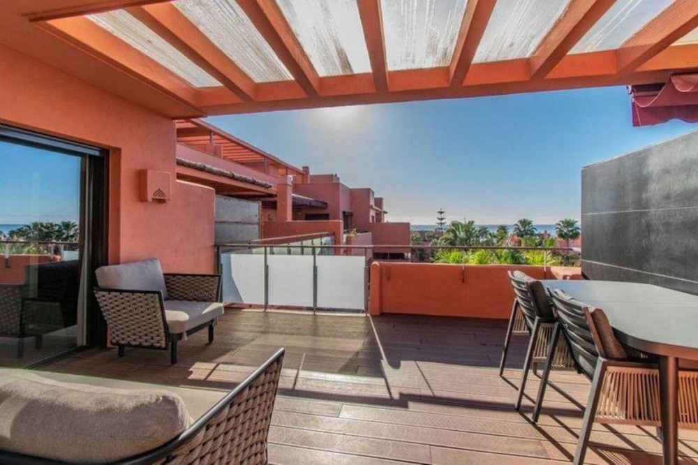 • A fully renovated penthouse blending elegant design with breathtaking sea views. Situated in the exclusive New Golden Mile area of Estepona, between Marbella and Estepona, it offers walking access to the beach and is just minutes away from shops, restaurants, Puerto Banús, and the region’s finest golf courses. This spacious duplex penthouse features three bright bedrooms, three modern bathrooms with underfloor heating, a stylish living room with an integrated kitchen, a terrace with sea views, and a large solarium on the upper floor. The property includes a convenient parking space and a storage room. Located in a prestigious gated community, the property offers 24-hour security, an outdoor pool, a heated indoor pool, a SPA, a sauna, and a fitness center. An ideal home for those who want to enjoy comfort, luxury, and magnificent views in one of the most exclusive areas on the Costa del Sol.