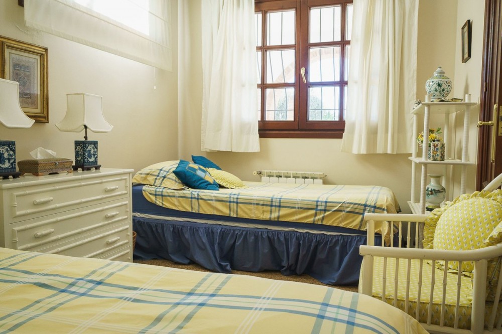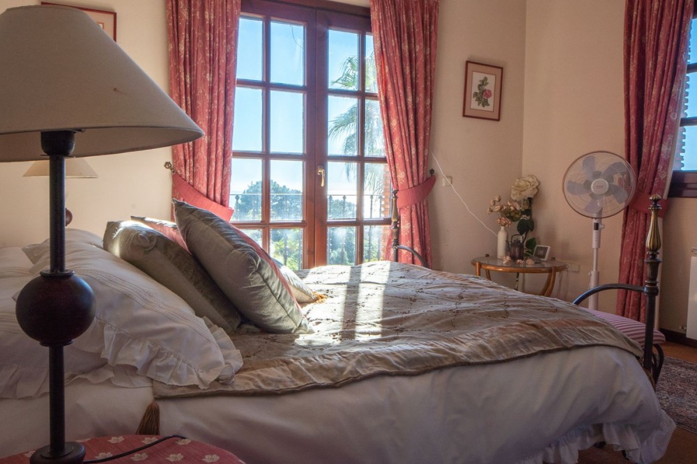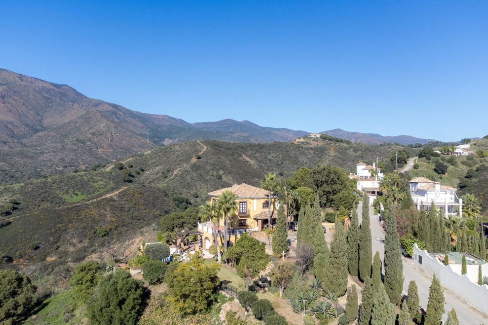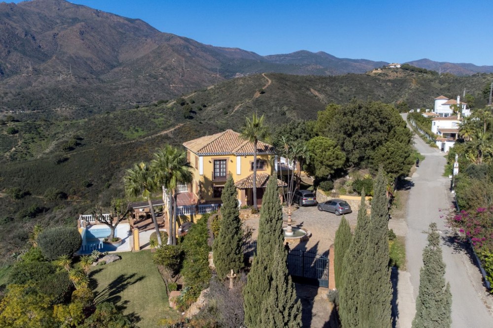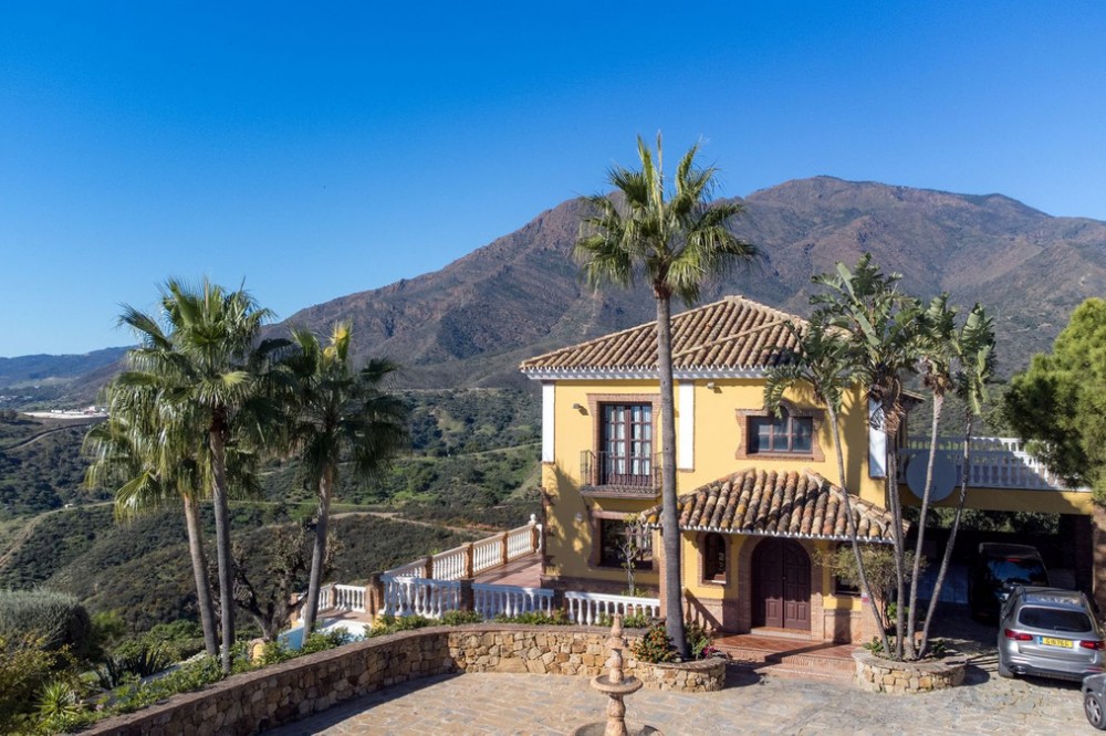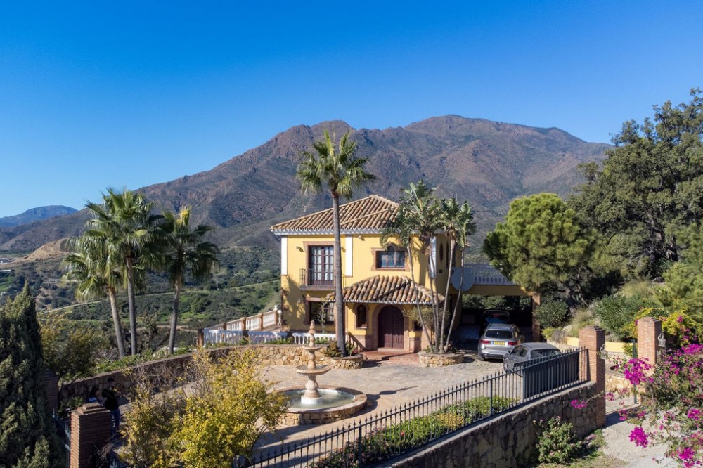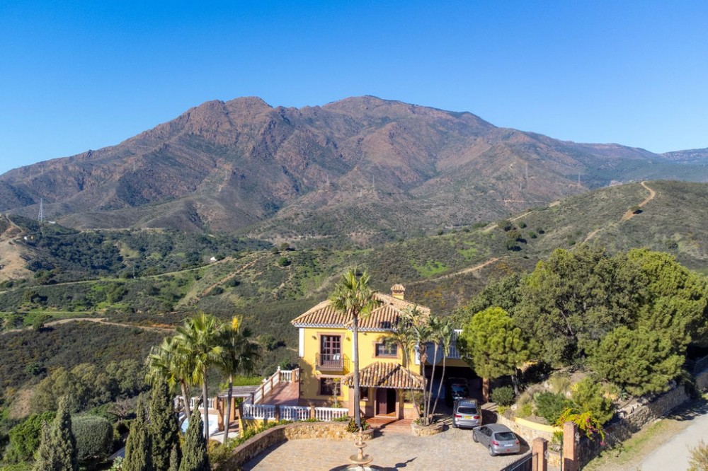 - Located in the tranquil hills behind the urban center of Estepona, this expansive villa offers exceptional potential and breathtaking views of the mountains, the Mediterranean Sea, Gibraltar, and even the African coastline. Set on a generously sized plot of just over 6,000 sqm, the property boasts terraces with fruit trees, a large landscaped garden, and ample outdoor space for relaxation and entertainment. Conveniently located, it’s only a 7-minute drive to Estepona's vibrant center—or for the adventurous, a one-hour hike. The property welcomes you through a charming courtyard with a fountain or a formal driveway. There is ample parking for three or more cars, along with a carport. The villa spans three floors, each with multiple terraces designed to maximize the stunning vistas. The entrance level features an elegant double-height hall with a staircase leading to the upper and lower floors. On this level, you’ll find a cozy sitting room with a working fireplace, a dining room, a fully equipped kitchen, and a guest cloakroom. A large terrace offers the perfect setting for hosting dinners while enjoying panoramic views. Upstairs, the spacious master suite includes a dressing room and a spa-style en-suite bathroom. Two additional bedrooms, one set up as a double room and the other as a single guest room, share a guest bathroom. All bedrooms are fitted with built-in wardrobes and enjoy picturesque views. The lower level offers remarkable versatility. It currently features two large double bedrooms, one smaller bedroom, two separate shower rooms, and an open-plan sitting room with access to a covered terrace and the pool area. A secondary kitchen, added to what was once a storage room, transforms this level into a self-contained three-bedroom apartment—ideal for guests or extended family. The villa is equipped with oil heating and working fireplaces, ensuring comfort throughout the year. The garden and pool area can be accessed from the lower level or via a staircase from the courtyard. The pool area is a true highlight, offering uninterrupted views of the mountains, the Mediterranean, Gibraltar, and Morocco. A dedicated BBQ area adds to its charm, making it the perfect spot for outdoor entertaining. Contact me today for a tour!