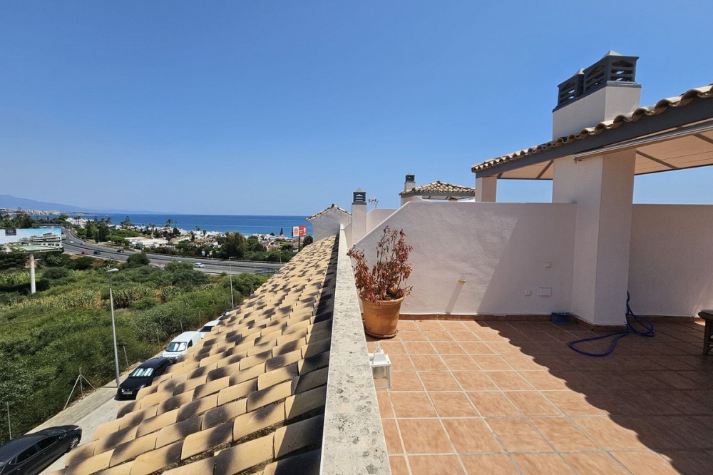 - Penthouse now available in Galera sun estepona, just a a stone’s throw away from the sea! (just on the other side of the road!)This is a very comfortable top floor two bed apartment. The urbanisation has a pool and the property comes included with a parking space and storage. There are lifts in the building. This property is a two bed, one bath apartment with a large 25m2 terrace from the living room and then you have a wide and easy to use spiral staircase towards the large 50M2 terrace with sea views. Awesome space for entertaining, sunbathing and to soak up the spanish lifestyle. Great location, close to the n340, but no roadnoise, all different amenities around, do contact us now if you have any doubts or questions, we have a full team that can help with legal advise, mortgages and or tax advise, also do we have a team to reform, build etc. See you soon!