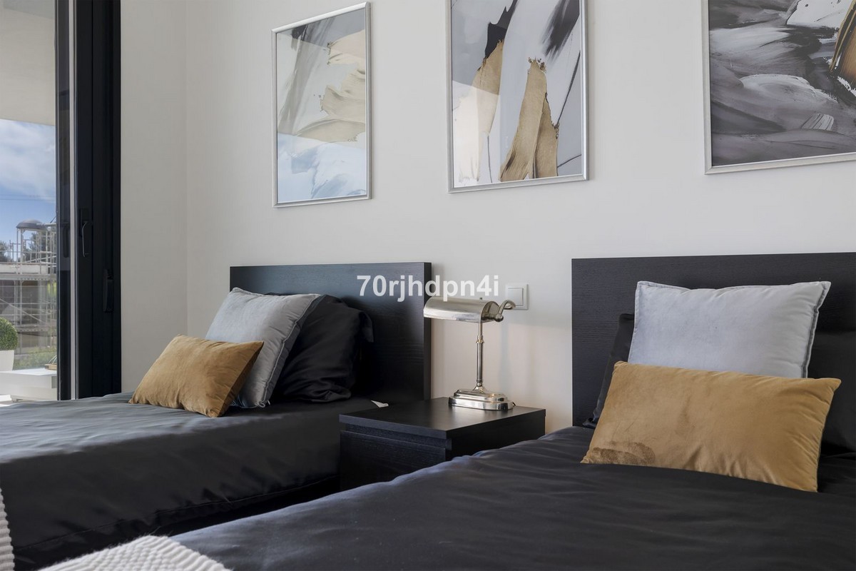 - Modern Apartment in Mirador del Golf, Estepona This stylish and modern apartment in the exclusive Mirador del Golf in Estepona West offers a unique opportunity for those seeking peace, nature, and a touch of luxury — just minutes from the beach and the charming old town of Estepona. The location is truly exceptional: right next to Estepona Golf, in a green and tranquil setting with panoramic views over the valley and the sea. Yet, in just 5 minutes, you can reach the lively town centre of Estepona, with its pedestrian-friendly streets, cosy chiringuitos, golf clubs, international schools, boutique shops, and gourmet restaurants. Puerto Banús is only 20 minutes away, Marbella just 30 minutes by car. The apartment is situated on the first floor of a recent 2022 building and is east-facing, with plenty of natural light thanks to its large floor-to-ceiling windows. The elegant open-plan living space features a fully equipped kitchen, a cosy sitting area, and direct access to a spacious covered terrace — ideal for enjoying the Mediterranean lifestyle to the fullest. The master bedroom includes an en-suite bathroom, and both bedrooms open onto the terrace — perfect for catching the fresh morning breeze or sipping an aperitif at sunset. The urbanisation itself is safe and well-maintained, offering an elevated communal swimming pool with spectacular views, a fully equipped gym, landscaped gardens, and underground parking. An ideal opportunity for anyone looking for a second home, an investment property, or a carefree holiday apartment under the sun.