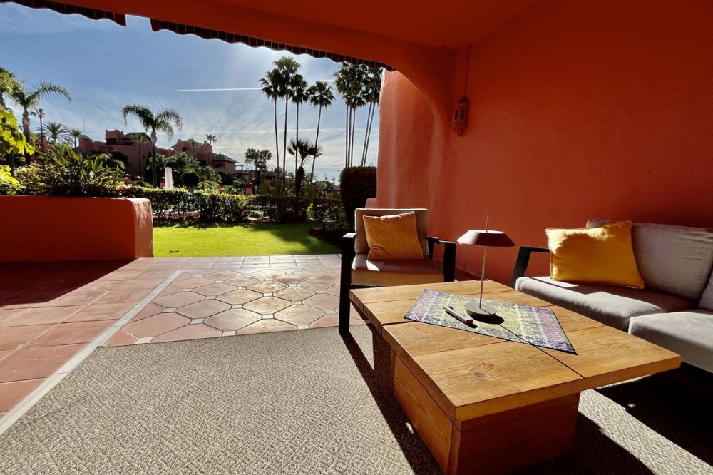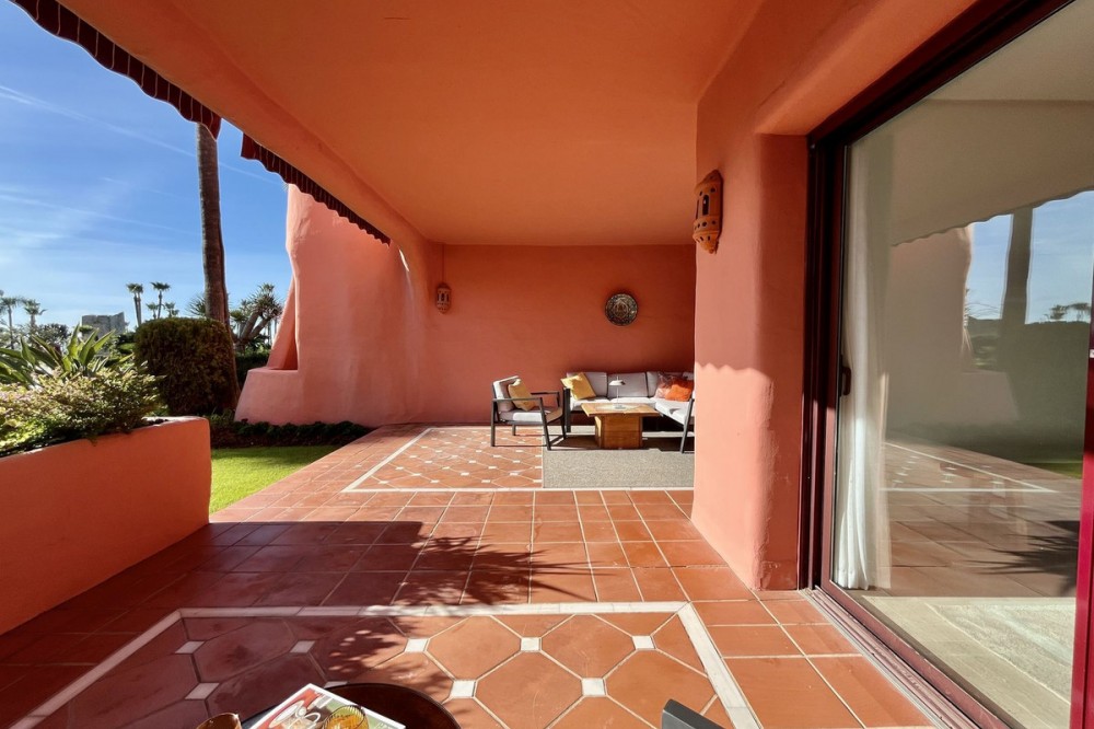 - Exclusief appartement op de begane grond in Estepona, Costa del Sol. met 3 slaapkamers, 2 badkamers, bebouwde oppervlakte 129 m², terras 42 m². Afgesloten woonwijk, direct aan het strand. Ligging: Aan het strand, dicht bij de zee, dicht bij de stad, dicht bij scholen, in een woonwijk, direct aan het strand gelegen complex. Oriëntatie: Oost, Zuidoost. Conditie: Uitstekend. Zwembad: Gemeenschappelijk, verwarmd kinderzwembad. Klimaatbeheersing: Airconditioning, heteluchtverwarming, vloerverwarming, vloerverwarming in de badkamers. Uitzicht: Zee, tuin, zwembad. Voorzieningen: Overdekt terras, Lift, Inbouwkasten, Nabij openbaar vervoer, Privéterras, Satelliet-tv, Wifi, Berging, Badkamer en suite, Toegankelijk voor mensen met beperkte mobiliteit, Dubbele beglazing, 24-uursreceptie, Nabij kerk, Glasvezelinternet. Meubilair: Gedeeltelijk gemeubileerd. Keuken: Volledig ingericht. Tuin: Gemeenschappelijk. Beveiliging: Afgesloten complex, elektrische rolluiken, intercom, alarmsysteem, 24-uursbewaking. Parkeren: Ondergronds, Garage, Overdekt, Privé. Nutsvoorzieningen: elektriciteit, drinkwater, telefoon, zonnepanelen. Categorie: Aan het strand, Luxe.