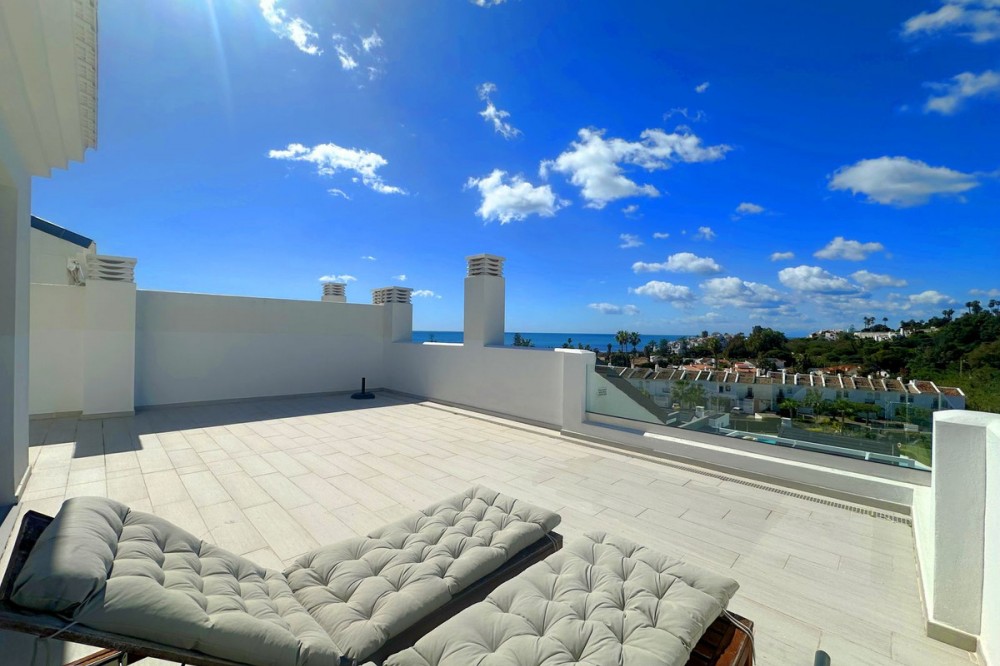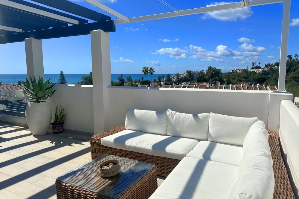 - BEACHSIDE PENTHOUSE WITH PANORAMIC SEA VIEWS, This propert combines luxury, spaciousness, and inspiring views. Just a 4-minute walk from the beach and only 5 minutes drive from the center of Estepona, the property boasts a privileged location ideal for those seeking well-being without giving up everyday convenience. Málaga Airport is just 50 minutes away, making getaways or family visits simple and accessible. Facing southeast, the home is bathed in natural light from sunrise to late afternoon. Enjoying also views to the pool, and mountains from its spacious 40m² terrace, as well as from the spectaEcular private solarium of another 40 m² perfect for relaxing or sharing unforgettable moments. In excellent condition, making it ideal for families, a second home, or a solid investment on the Costa del Sol INCLUDING HOLIDAY RENTAL LICENCE. High-quality finishe, while.. The community features well-maintained gardens and pool, and a gym creating leisure and relaxation spaces without leaving home. A storage room and garage are also included. Close to supermarkets and entertainment areas, this property represents a unique opportunity for those in search of luxury, tranquility, and excellent access to both the beach and the city. Whether as a permanent residence or a holiday retreat, definititely a very good investment in one of the most promising areas of the Costa del Sol.