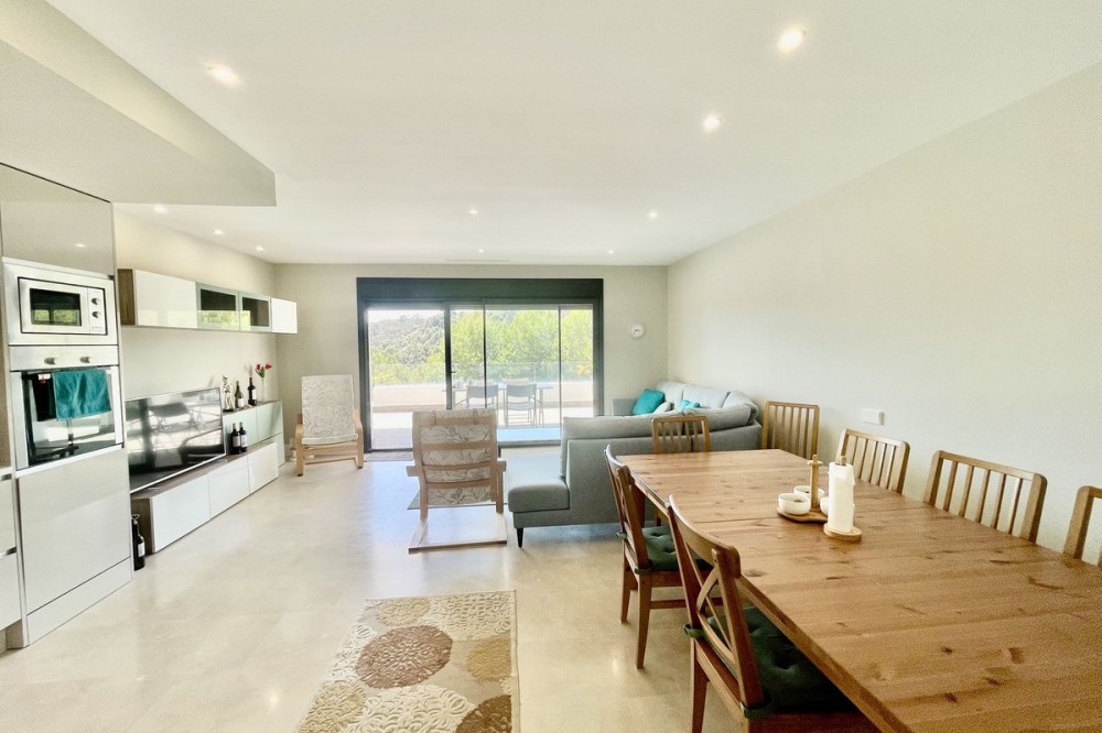 - This stylish two-bedroom, two-bathroom apartment is located on the first floor of the sought-after Ocean Hills complex in Selwo, Estepona. Completed in 2017, the property offers a generous 94 m² built area, with 80 m² of usable interior space, complemented by an impressive 51 m² terrace. The terrace, featuring both covered and open areas, is ideal for outdoor living year-round, with open green views creating a serene and private setting. There is also the option to enclose part of the terrace with Lumon glass curtains, adding a versatile space that can be enjoyed in all seasons. Inside, the apartment boasts a bright and airy layout with an open-plan living and dining area that flows seamlessly onto the terrace. Both bedrooms are spacious and enjoy direct access to the outdoor area, enhancing the indoor-outdoor lifestyle this home offers. The property is finished to a modern standard throughout, with two full bathrooms and a fully fitted kitchen with Bosch appliances and separate utility room. It is sold with a private parking space and a separate storage unit. Ocean Hills is a contemporary complex with beautifully maintained gardens and communal swimming pools, all set within a peaceful environment. Community fees are low, at just €180 per month, making this a fantastic opportunity as a permanent residence, holiday getaway, or investment.
