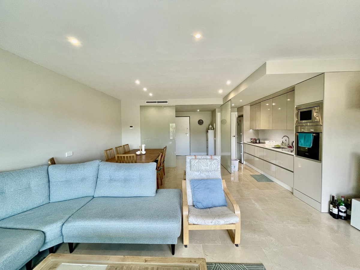 - This stylish two-bedroom, two-bathroom apartment is located on the first floor of the sought-after Ocean Hills complex in Selwo, Estepona. Completed in 2017, the property offers a generous 94 m² built area, with 80 m² of usable interior space, complemented by an impressive 51 m² terrace. The terrace, featuring both covered and open areas, is ideal for outdoor living year-round, with open green views creating a serene and private setting. There is also the option to enclose part of the terrace with Lumon glass curtains, adding a versatile space that can be enjoyed in all seasons. Inside, the apartment boasts a bright and airy layout with an open-plan living and dining area that flows seamlessly onto the terrace. Both bedrooms are spacious and enjoy direct access to the outdoor area, enhancing the indoor-outdoor lifestyle this home offers. The property is finished to a modern standard throughout, with two full bathrooms and a fully fitted kitchen with Bosch appliances and separate utility room. It is sold with a private parking space and a separate storage unit. Ocean Hills is a contemporary complex with beautifully maintained gardens and communal swimming pools, all set within a peaceful environment. Community fees are low, at just €180 per month, making this a fantastic opportunity as a permanent residence, holiday getaway, or investment.