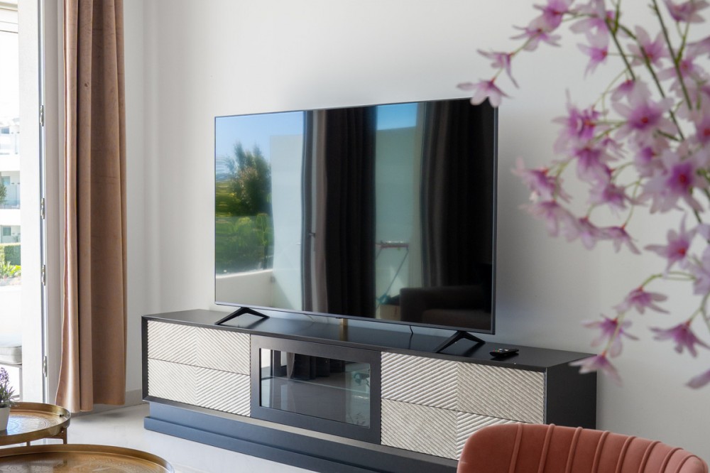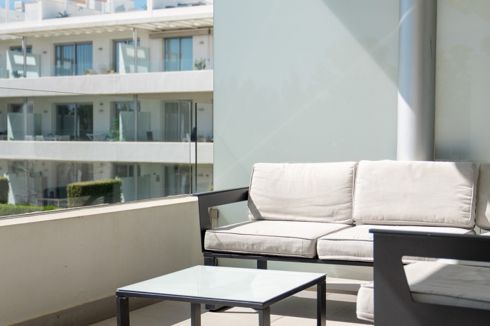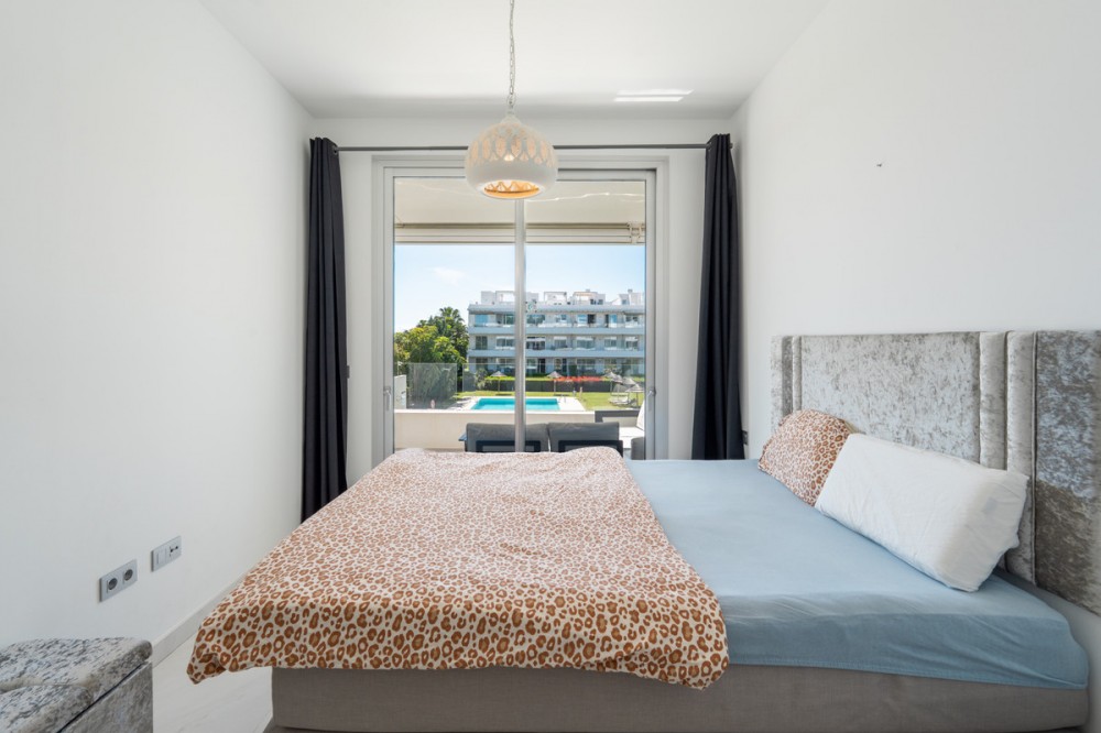 - This bright and spacious 2-bedroom, 2-bathroom apartment is located in the sought-after area of Bel-Air, right in the heart of the New Golden Mile. The master bedroom features an en-suite bathroom with direct access to a generous 21m² terrace overlooking the beautifully maintained communal pool — ideal for enjoying the Mediterranean lifestyle. Just a short 5-minute walk to the beach and close to all essential amenities including supermarkets, pharmacies, restaurants, and more. Both Marbella and Estepona are just a 10-minute drive away, offering the perfect balance of convenience and tranquility. The property includes: Underground parking space Private storage room Furniture included ready to move in or rent it long term Whether you're looking for a holiday home, or permanent residence, this apartment offers exceptional value in a prime location. Kindly note that short term rentals are not allowed in this complex