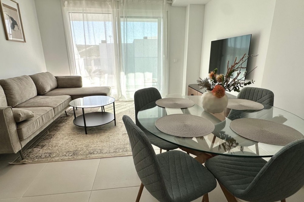 • No car needed, beach & city centre on foot! Move-in ready and fully furnished, this recently delivered apartment sits in the vibrant heart of Estepona. The beach is a 4-minute drive or a pleasant 20-minute stroll, and the city centre is also within easy walking distance, perfect for a lifestyle where everything is nearby. Located in a modern residential complex, residents enjoy a large swimming pool for adults and children. The area is dynamic and booming, with excellent connectivity via the A7 and AP7. Daily essentials are all a short walk away: schools, nurseries, supermarkets, restaurants, and more. Inside, a spacious living area integrates a fully equipped modern kitchen. The living room opens onto a cosy terrace, ideal for morning coffee or sunset moments. The home offers two bedrooms, each with built-in wardrobes, including a master suite with its own private bathroom. Practical extras include an underground parking space and a storage unit. Experience Estepona on foot, with the beach, centre, and services all close by while enjoying the comfort of a brand new home! Interested? Get in touch to arrange a viewing or request details.