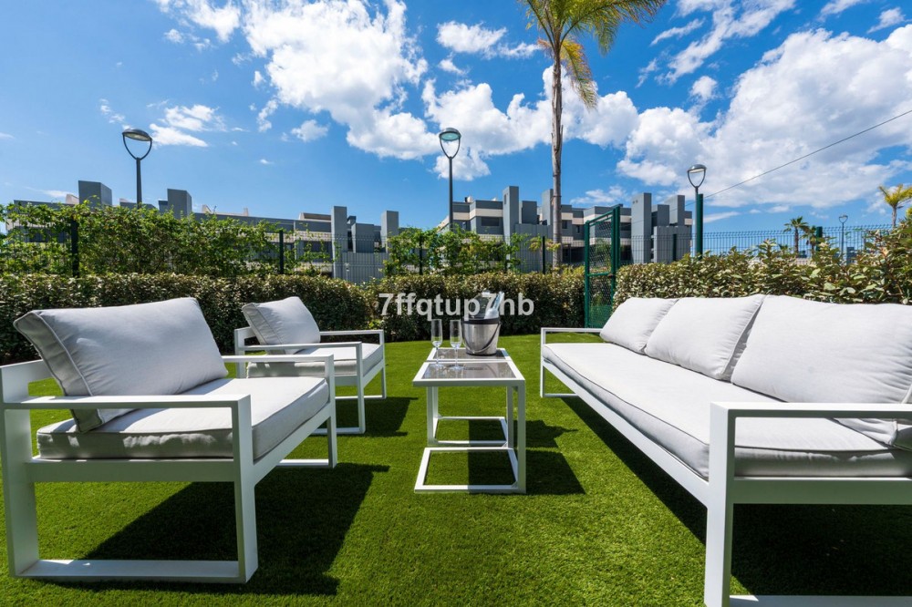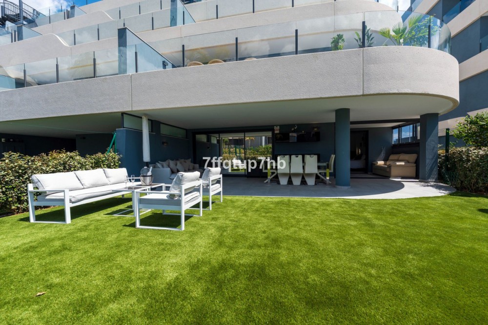 - We are delighted to present this beautiful corner ground floor apartment, nestled in Phase II of the exclusive Oasis 325 development—named for the 325 days of sunshine Estepona enjoys each year. This 3-bedroom apartment features an open-plan design, seamlessly integrating a modern, fully equipped kitchen with the living area. The space opens onto a spectacular south-facing terrace and a private 80 m² garden, perfect for basking in the endless sunlight that characterizes the Costa del Sol. Two of the three bedrooms boast stylish en-suite bathrooms. The master suite offers direct access to a private terrace, fully enclosed with glass curtains, providing the perfect spot to relax in total privacy and enjoy the sunrise without leaving your room. Every detail of this apartment has been thoughtfully designed to combine functionality and style. The kitchen has been expanded with extra cabinetry and a perfectly integrated XL fridge. Additional conveniences include a separate laundry room, an independent storage room, and one underground parking space—making this home as practical as it is luxurious. All bedrooms are equipped with fully fitted built-in wardrobes and electric blinds for maximum comfort. Enhance your lifestyle with the resort-style amenities offered by this residential complex: lush gardens, outdoor swimming pools, a fully equipped gym, a luxurious spa with hammam and sauna, as well as a yoga and fitness studio—allowing you to relax or maintain an active lifestyle without leaving home. Additionally, there is a complete coworking space with a business center to meet all your professional needs. Oasis 325 enjoys a privileged location on the renowned New Golden Mile, just 10 minutes from Estepona and 15 minutes from Marbella. It is adjacent to La Resina Golf Course, 2 km from Atlas American School, and close to the popular Selwo Safari Park. Only 4 km from the beach, you can enjoy elegant beach clubs and gourmet restaurants nearby. Don’t miss the opportunity to experience everything this property has to offer. Delivered fully furnished and ready to move in!