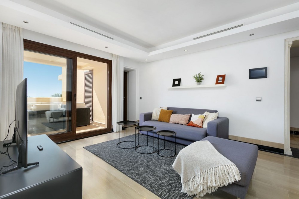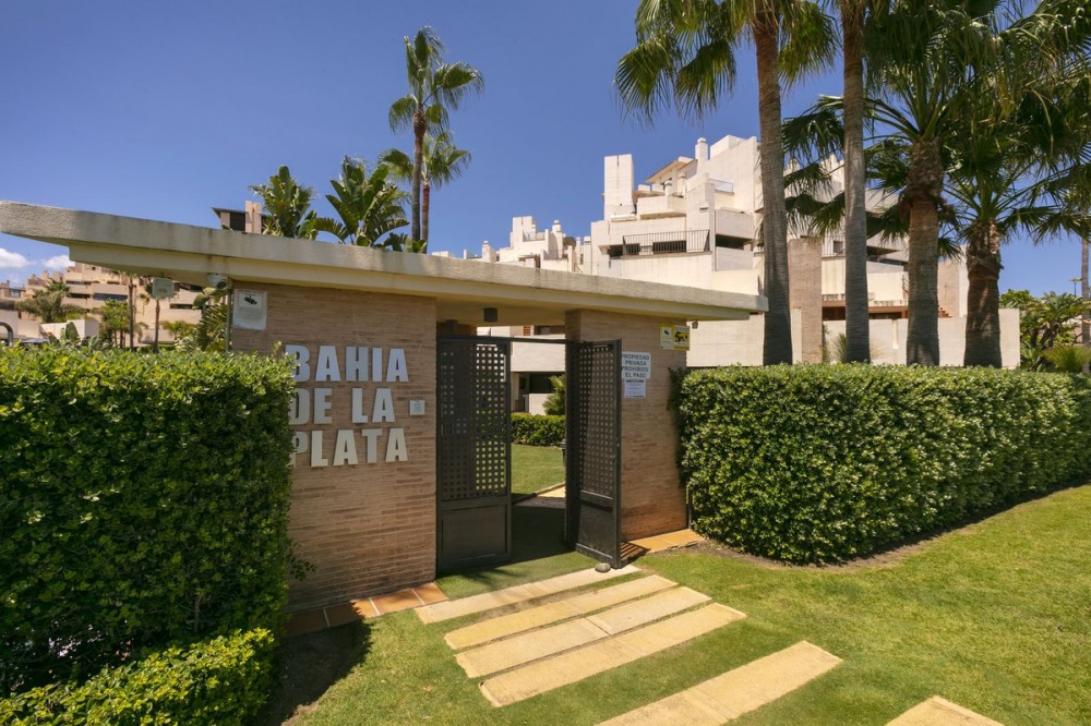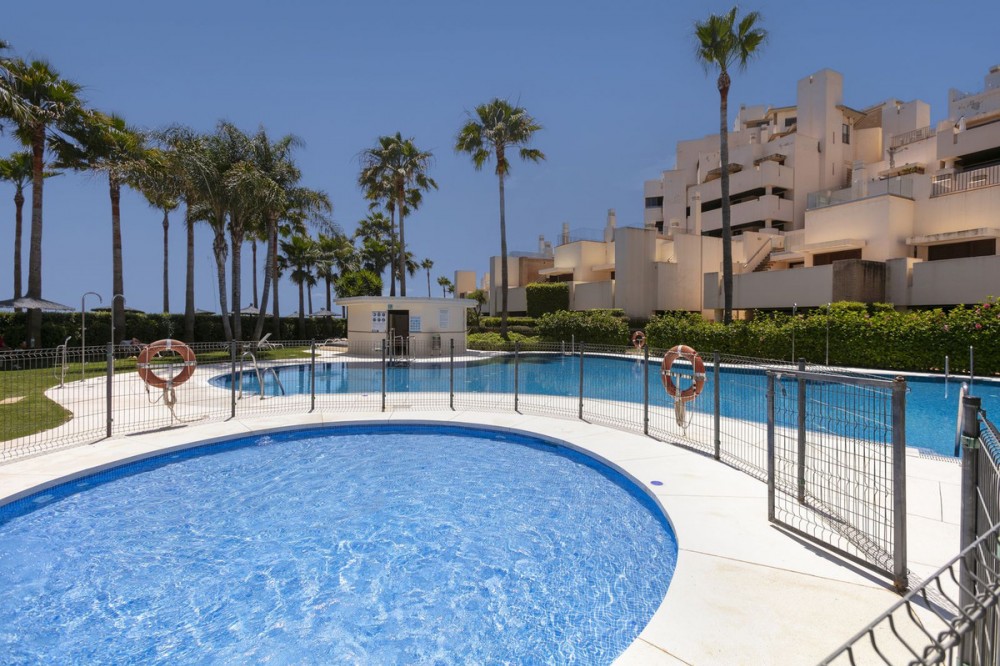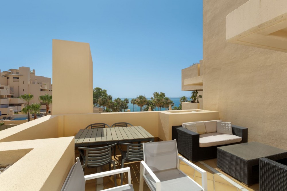 • Stunning 3 bed duplex with private rooftop pool located in the exclusive beachfront urbanisation Bahia de la Plata. Perfectly positioned with direct beach access and a short walk into the centre of Estepona and only 15 minutes drive from world famous Puerto Banus make this beautiful property the epitome of convenience. The community is gated and enjoys 24 hour security and concierge, large gymnasium with top quality weights and equipment, indoor spa centre with heated swimming pool, Turkish bath & sauna, padel tennis court & two large outdoor pools. The development is a short walk to a large number of restaurants and beach clubs including the famous Laguna Beach Club and even supermarkets. The apartment itself is built to a high standard & comes with underfloor hearting, electric roller shutters, jacuzzi bath and hot and cold air conditioning. The property is distributed with two bedrooms & bathrooms on the lower level with large sitting room leading out to a nice terrace with beautiful sea views, there is an internal staircase that leads up to another large terrace area, the 3rd bedroom & the large rooftop pool that belongs to the apartment. The perfect place for all day sun lovers where you can dip in and out of the privacy of your very own pool. Private underground parking space and storage are included. This property is stunning and must be viewed to be fully appreciated!