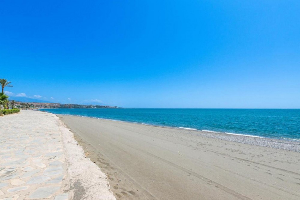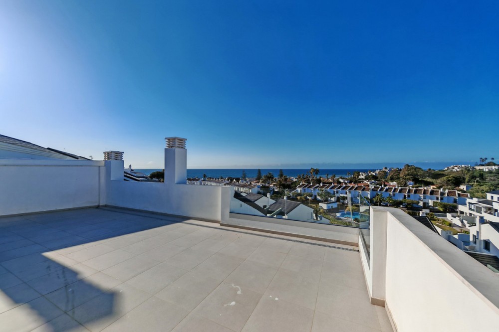 • Duplex Penthouse for sale in Arroyo Vaquero, Estepona with 4 bedrooms, 3 bathrooms, 2 en suite bathrooms, 1 toilet and with orientation south, with communal swimming pool, private garage (1 parking spaces) and communal garden. Regarding property dimensions, it has 182 m² built and 149 m² terrace. Has the following facilities amenities near, transport near, air conditioning, central heating, fully fitted kitchen, fireplace, guest room, storage room, alarm, double glazing, video entrance, dining room, private terrace, kitchen equipped, living room, sea view, security shutters, laundry room, covered terrace, fitted wardrobes, garden view, beach side, close to children playground, close to sea / beach, glass doors, balcony, optional furniture, excellent condition, close to town and surveillance cameras.