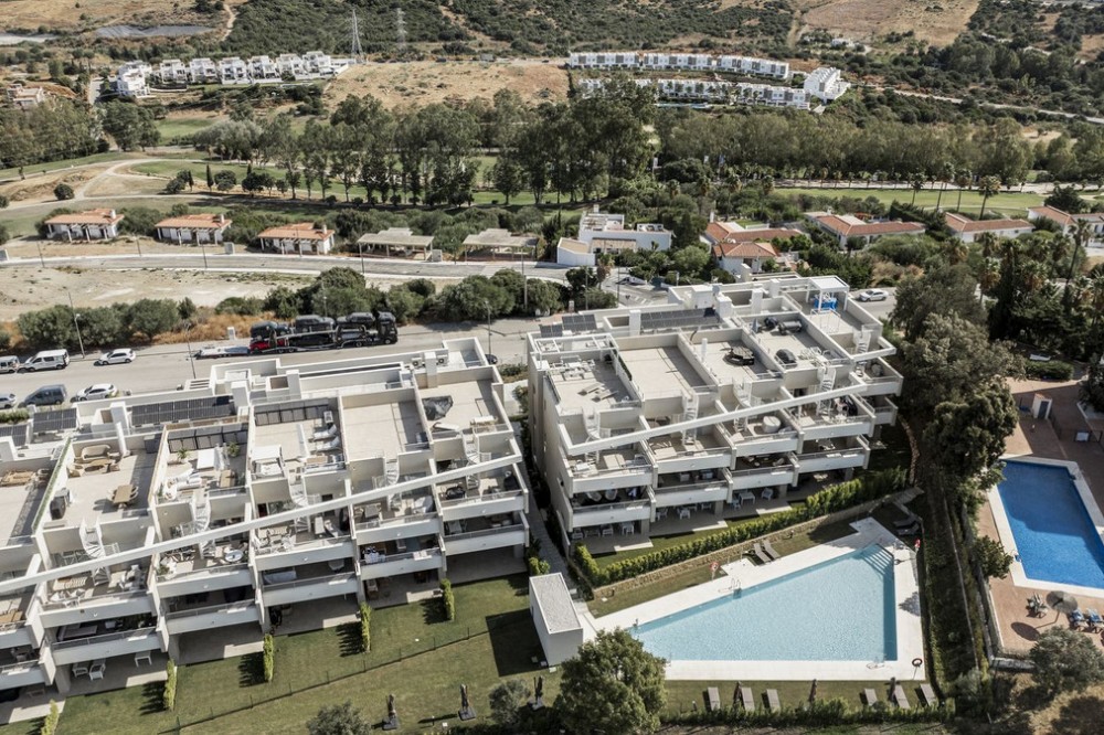 - Elegant 3-Bedroom Apartment in Sunny Golf, Estepona Welcome to this stylish middle-floor apartment in Sunny Golf, Estepona. Delivered in 2024 and upgraded with care, it offers a modern living experience on the Costa del Sol. The home features a custom-designed kitchen, freshly painted and wallpapered interiors, insect screens, and sheer curtains for comfort and style. The highlight is the 57 m² terrace, which can be fully enclosed to seamlessly extend your living space and allow year-round enjoyment of the sea, golf, and countryside views. With 3 bedrooms and 2 bathrooms, a southeast orientation, air conditioning, and high-quality finishes, this property is move-in ready. The gated complex provides landscaped gardens, a communal pool, lift access, and secure parking. Perfectly located near shops, Estepona town, and surrounded by golf courses, this apartment is an ideal choice for a luxury holiday home, smart investment, or permanent residence. Key Features & Upgrades • Entire apartment newly painted and wallpapered • Tailor-made, upgraded kitchen • High-quality insect screens and sheer curtains installed • Large 57 m² terrace fully enclosable, allowing you to extend the living area and enjoy year-round comfort Property Details • 3 Bedrooms | 2 Bathrooms • Built: 98 m² | Terrace: 57 m² • Orientation: South-East • Condition: Excellent