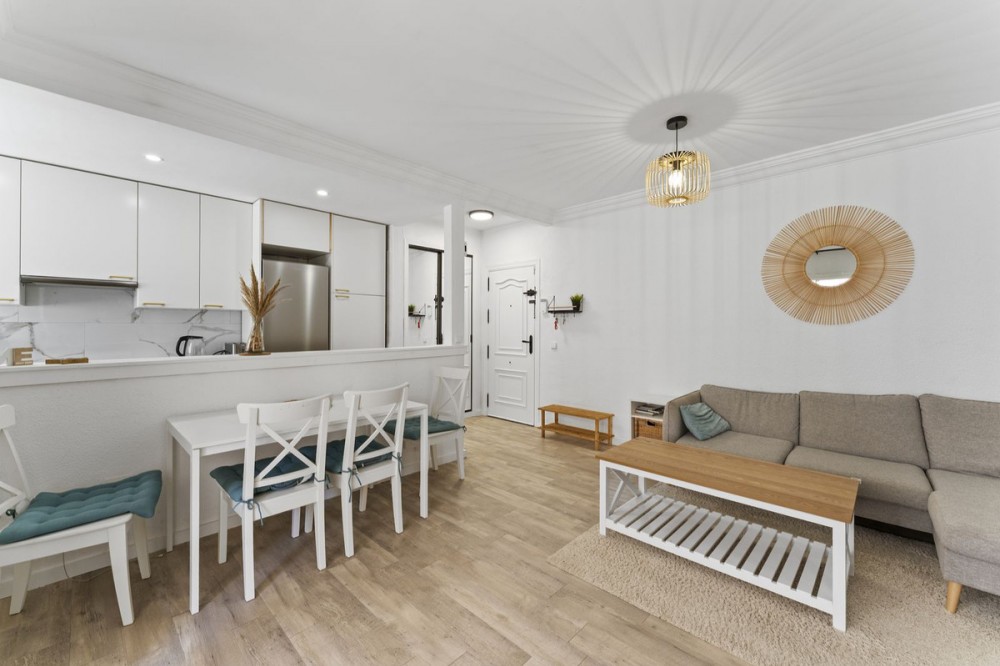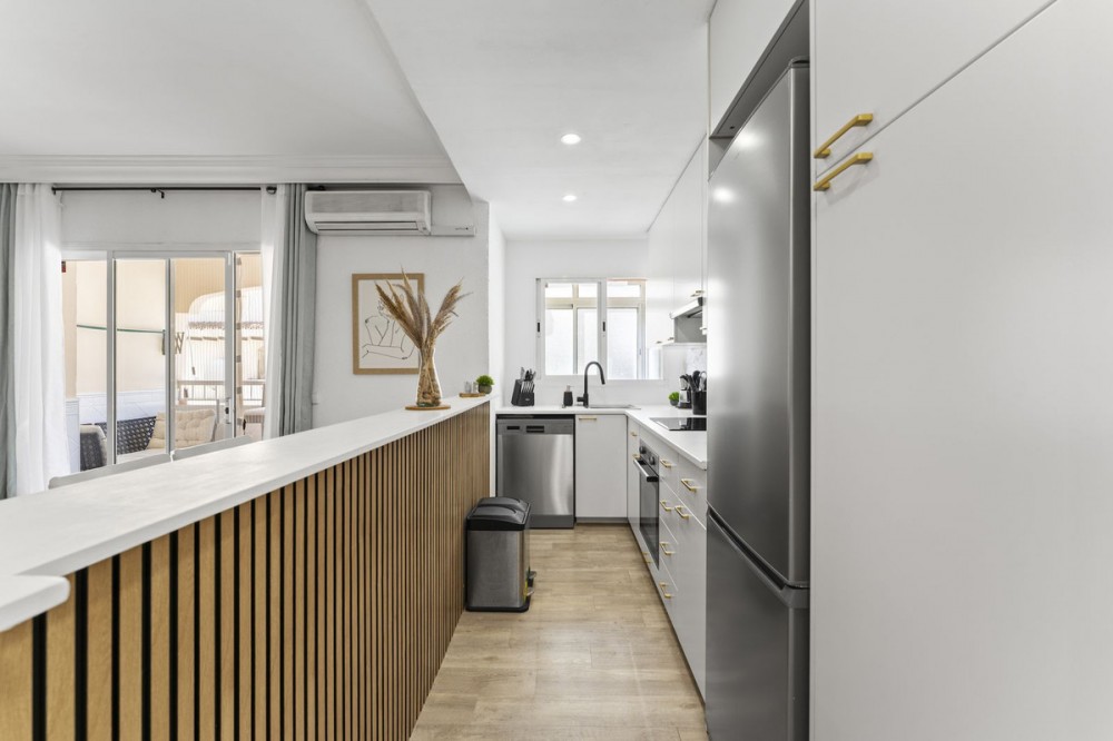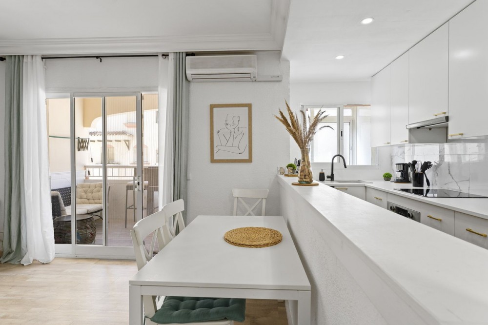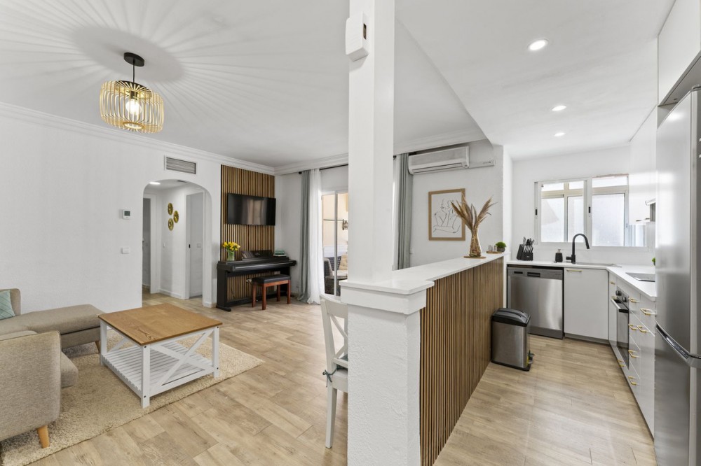 - Stylish Renovated Apartment by the Beach in Estepona Discover this beautifully renovated apartment, perfectly located in a sought-after beachfront urbanization in the very heart of Estepona. Just steps away from the beach, the marina, charming restaurants, shops, and supermarkets, this home offers the ideal blend of comfort and coastal lifestyle. The apartment features 2 spacious bedrooms and 2 modern bathrooms, along with a bright open-plan kitchen, dining, and living area designed in a contemporary style. From the private terrace, you can enjoy the sunshine and partial views of the Mediterranean—perfect for relaxing or entertaining. Highlights include: Fully renovated interiors with modern finishes Private terrace with beach views Elevator and private parking space A well-kept urbanization with swimming pool for residents Whether you are looking for a full-time residence, a holiday retreat, or a secure investment, this apartment ticks all the boxes. Its unbeatable location and stylish design make it a truly special opportunity in Estepona.
