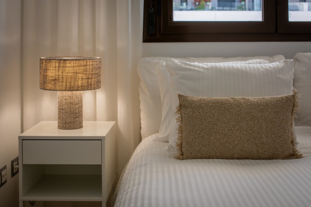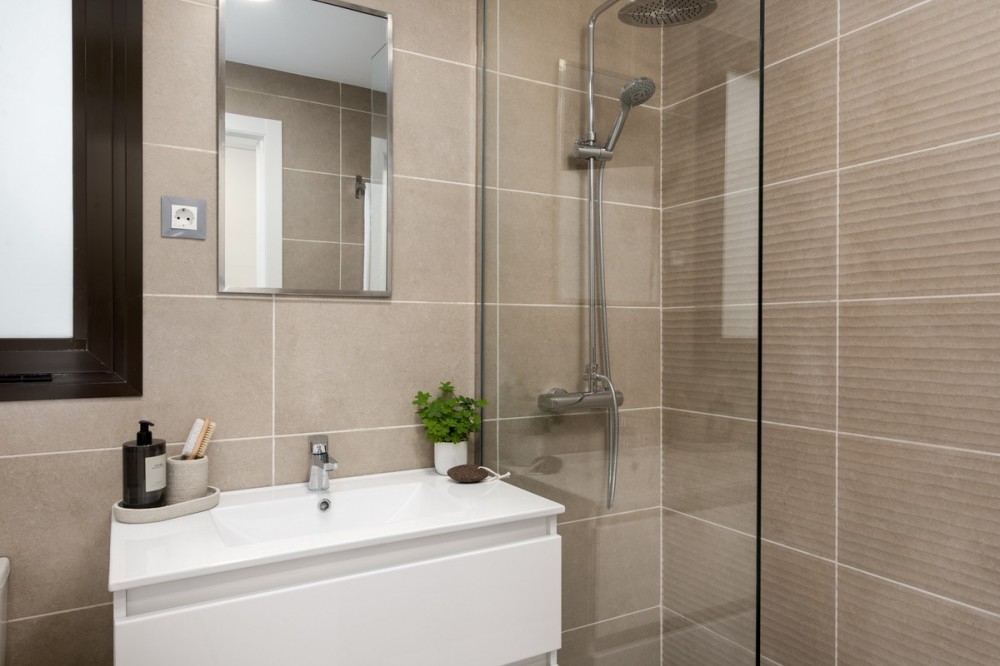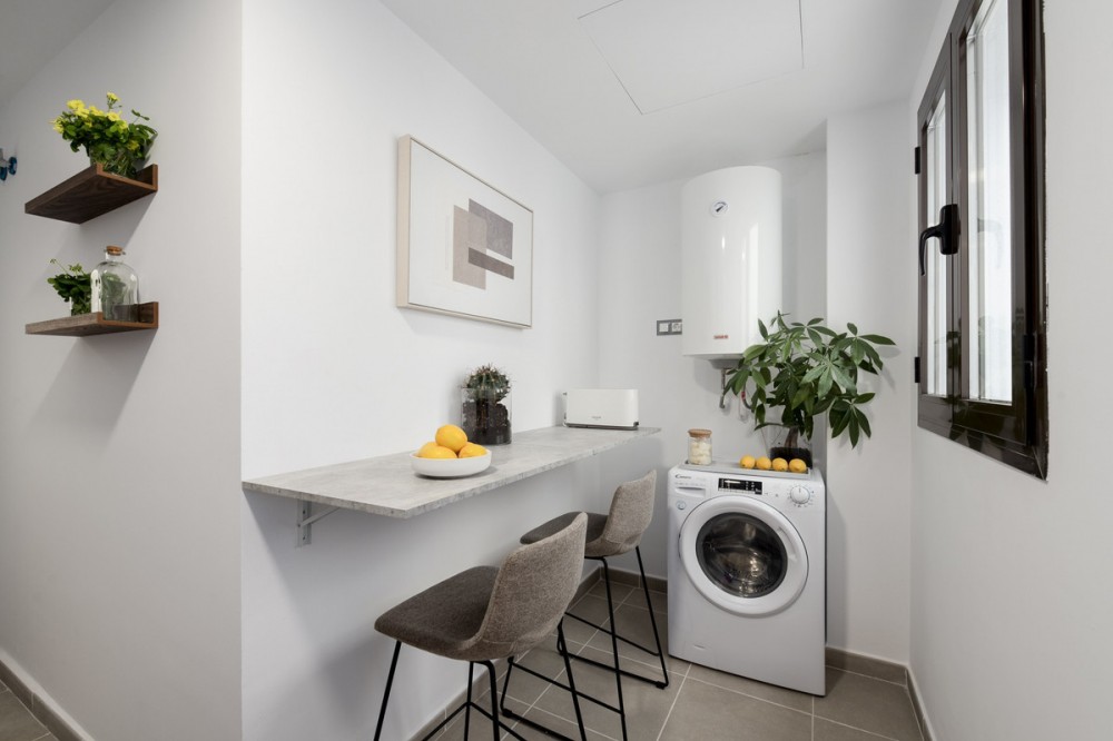 - This beautiful, newly built (2023) apartment is stylishly furnished and ideally located at the edge of Estepona’s historic old town. Offering 2 spacious bedrooms and 2 contemporary bathrooms, the home is designed for comfortable modern living. The open-plan living and dining area opens onto a sunny terrace overlooking a peaceful park, perfect for relaxing or entertaining. The apartment also features a fully equipped, separate modern kitchen with all necessary appliances and amenities, making cooking a true pleasure. Residents enjoy access to a rooftop communal saltwater pool with stunning views, as well as a lift for easy access and an underground parking space included for convenience. Situated just a short walk from the beach, vibrant shops, authentic tapas bars, and all the cultural charm of Estepona’s old town, this property offers the perfect blend of tranquility and accessibility. Everything you need is just steps away.