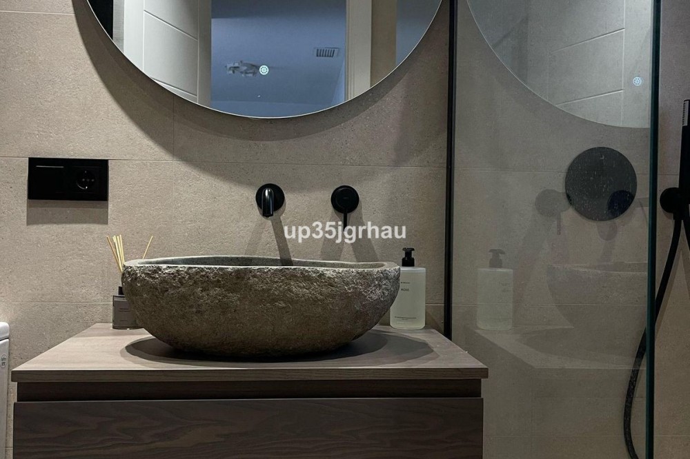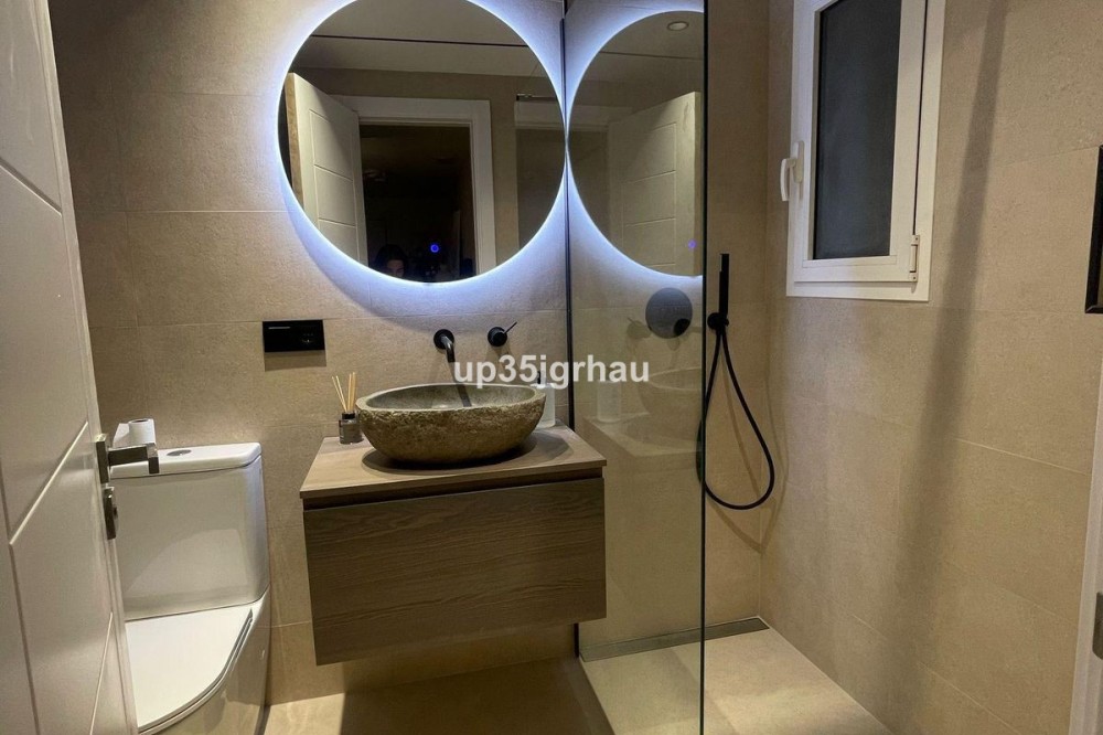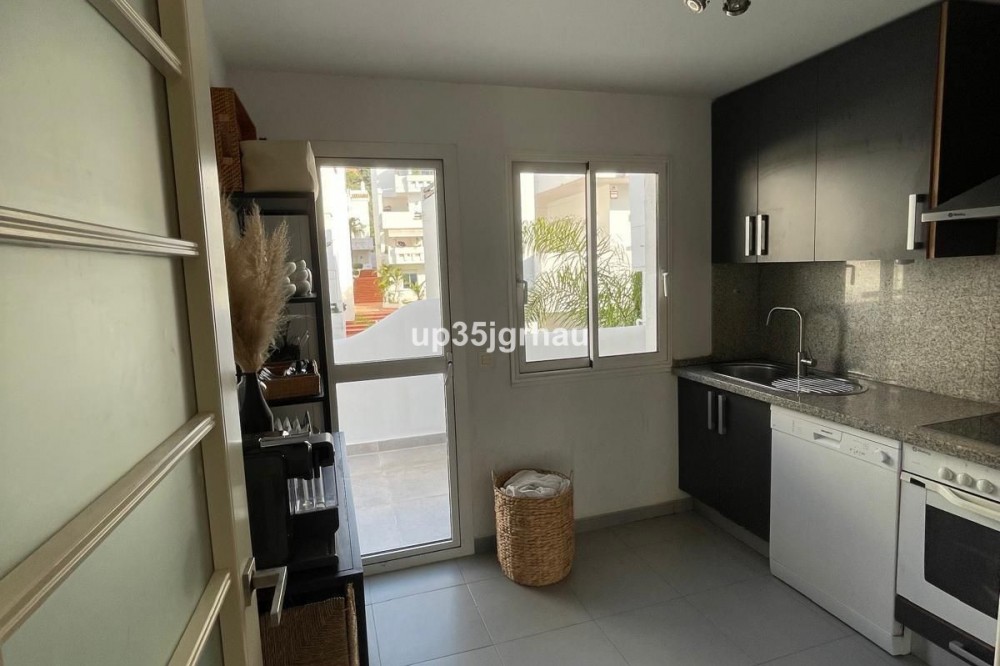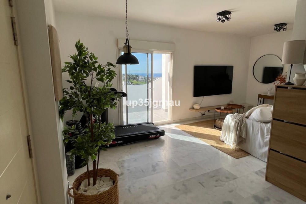 - Fantastic penthouse in a luxury development with a golf course. This prestigious gated community features a golf course, several restaurants, and shops. The penthouse has a surface area of 70 m2 + a 70 m2 solarium. With fantastic views of the sea and golf course. It also has a private underground garage and storage room. Penthouse, Estepona, Costa del Sol. 1 Bedroom, 1 Bathroom, Built 70 m², Terrace 70 m². Setting : Commercial Area, Close To Sea, Close To Town, Close To Schools, Urbanisation. Orientation : East, South East, South, South West, West. Condition : Excellent. Pool : Communal, Children`s Pool. Climate Control : Air Conditioning. Views : Sea, Golf, Panoramic. Features : Covered Terrace, Lift, Fitted Wardrobes, Near Transport, Private Terrace, Solarium, Satellite TV, WiFi, Storage Room, Ensuite Bathroom, Access for people with reduced mobility, Marble Flooring, Double Glazing, Restaurant On Site, Fiber Optic. Furniture : Fully Furnished. Kitchen : Fully Fitted. Garden : Communal. Security : Gated Complex, Entry Phone, 24 Hour Security. Parking : Underground, Garage, Private. Utilities : Electricity, Drinkable Water, Telephone. Category : Bargain, Beachfront, Cheap, Golf, Holiday Homes, Investment, Luxury, Reduced, Contemporary.