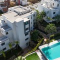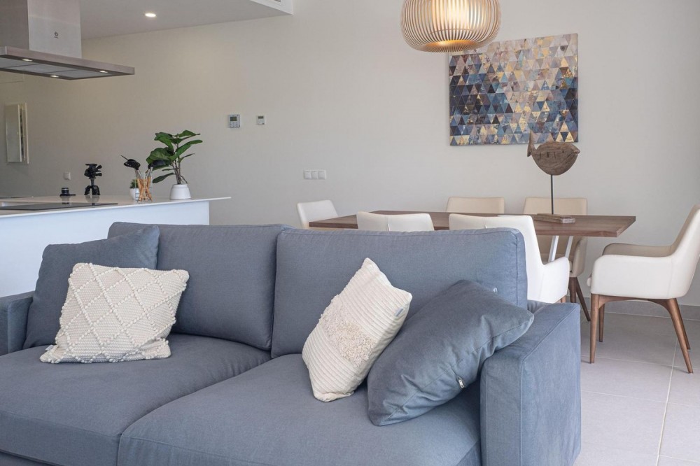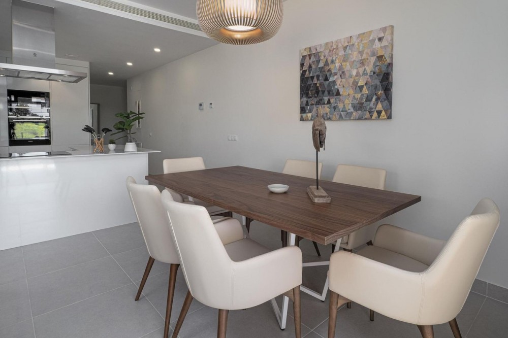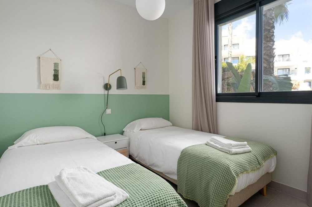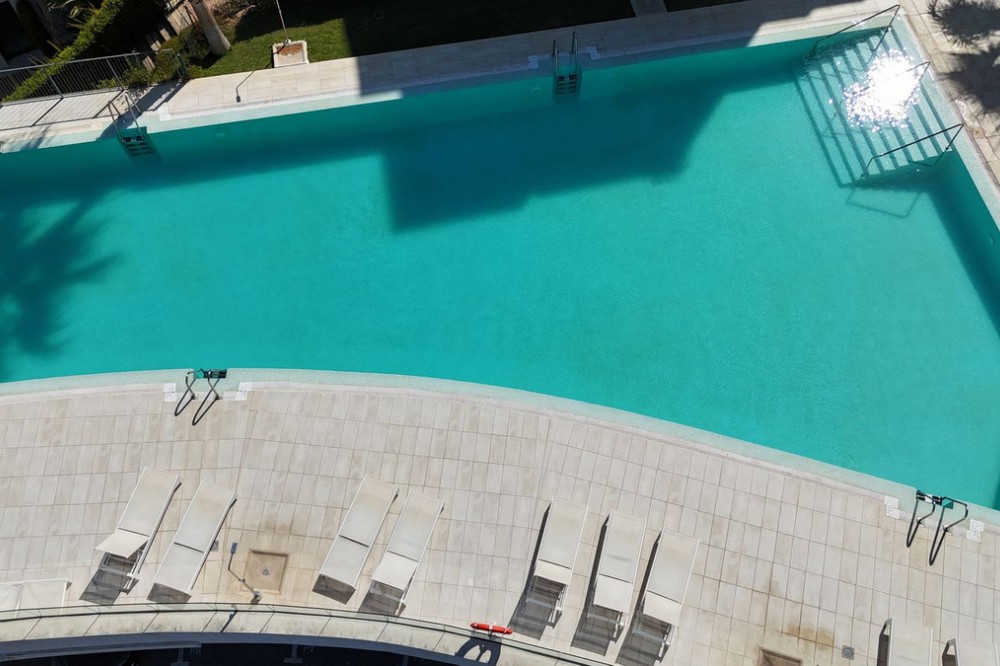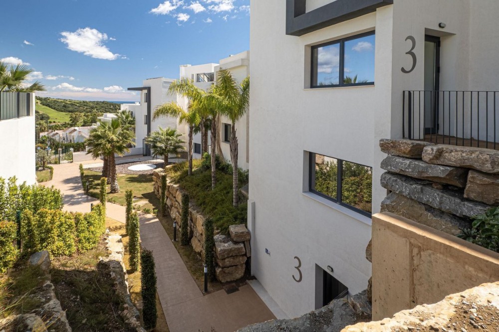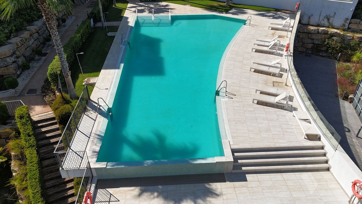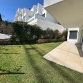 - Exclusive Nearly New 3 Bedroom Apartment in Mirador del Golf – ESTEPONA Welcome to this exceptional ground-floor corner apartment, delivered in 2022, located in the prestigious Mirador del Golf complex in Estepona. A true prime location, just steps away from several renowned golf courses, the exotic Alcazaba Lagoon, and Estepona’s new hospital. Here, luxury, comfort, and accessibility come together in perfect harmony. The complex itself radiates elegance and sophistication: only 54 apartments spread over 6 modern buildings, carefully integrated into the natural slope of the terrain on an 8,400 m² plot. With its contemporary architecture, southeast to southwest orientation, and panoramic views of Estepona Golf, the mountains, and the Mediterranean Sea, Mirador del Golf offers a unique living environment. This spacious apartment boasts 125 m² of built living space, an impressive 51 m² sun-drenched terrace, and a private garden of 95 m², beautifully landscaped with a lawn maintained by the community. Thanks to its corner position and oversized windows, it enjoys abundant natural light and breathtaking views of the sea, the Sierra Bermeja mountains, and the swimming pool. Inside, the apartment is tastefully decorated and fully furnished, featuring high-quality finishes throughout. The open-plan kitchen with a striking central island is fitted with top-quality Siemens A+ appliances. The bright and airy living and dining area flows seamlessly to the terrace and garden through three large sliding doors – blending indoor and outdoor living in true Mediterranean style. The master bedroom comes with a private ensuite bathroom with walk-in shower and built-in wardrobes, and offers direct views of the terrace and garden. The two additional bedrooms, both with fitted wardrobes and beautiful views of the Sierra Bermeja mountains and pool, share a stylish second bathroom with bathtub. A separate utility room next to the kitchen houses the washing machine and provides additional storage space. Residents of Mirador del Golf benefit from excellent community facilities, including a large 25-meter infinity pool and beautifully landscaped tropical gardens, and a fully equipped gym. The property also includes a spacious underground parking space and a private storage room of over 10 m² with electricity, perfect for charging e-bikes or as extra storage. Naturally, the apartment is equipped with all modern and eco-friendly features: central hot/cold air conditioning, LED lighting, alarm system, smoke detectors, double glazing, and an energy efficiency rating of B. Adding even more value, this property comes with a short-term rental license, making it highly attractive as both a holiday home and an investment, offering excellent rental returns. In short: this is a top-quality apartment in a prime location, combining the charm of the Costa del Sol with the comfort of modern living. Keys are available at our office – don’t miss the opportunity to view this outstanding property for yourself!