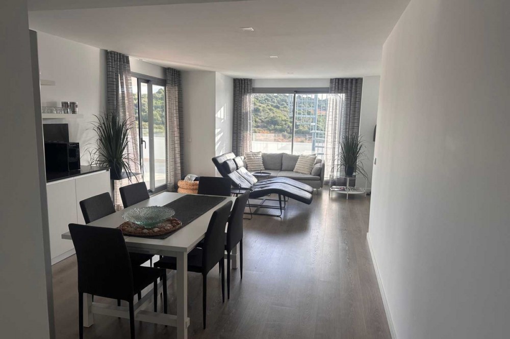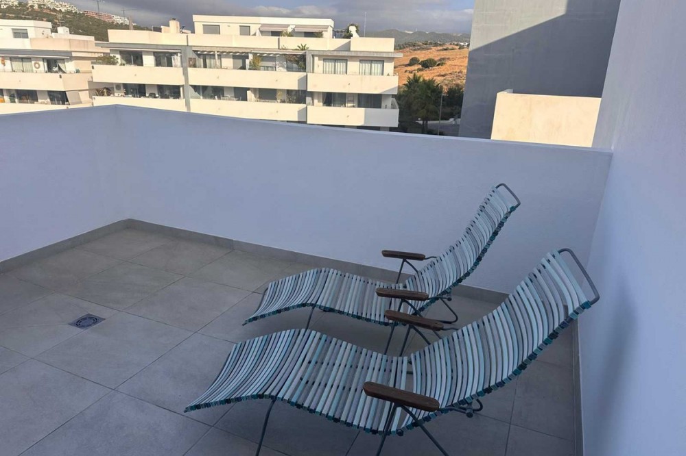 - Contemporary and luxury penthouse with roof terrace in top-condition - Estepona west close to the beaches and amenities! Construction finished a few years ago in gated complex with community gardens and swimming pool. A total built area of 286 sqm; internal area of 126 sqm + 80 sqm of terraces including a roof terrace. Distributed in spacious salon with american open plan kitchen, outgoing to one of the terraces, which is partly covered and has open and unobstructed sea views. 3 bedrooms and 2 bathrooms, on en-suite to the master bedroom. All bedrooms are with built-in wardrobes. Included in the price is a very spacious underground parking place and a 8 sqm storage room. The property is newly high quality furnished, not included in the price but the furnitures are negotiable. All rooms are on the entrance level, the roof terrace on the 2nd level of the penthouse, accessable from the lower main terrace with amazing panoramic views torwards the surroundings up to the sea. Features: parkett flooring, double glazing, security entrance door, sun blinds, bright and light-filled apartment, new furnished and completely fitted luxury kitchen, roof terrace, 3 more terraces, built-in wardrobes, elevator, gated complex, alarm system, WIFI, aircondition hot/cold, video entry phone, undergroud garage, storage room. Top location! Close to the beaches and just a short drive at the outskills of Estepona and Estepona port. Surrounded by several of the best golf course, like Estepona Golf, Camarate Golf, Azata Golf, Casares Golf and Finca Cortesin Golf & Country Club. An international school is close by as well as the new General Hospital, which is only 6 minutes drive away. Totaly quiet area but close to everything. 45 minutes drive to Malaga airport or to the south to Gibraltar airport. 70% mortgage of purchase price is offered from Spanish Banks for this property.