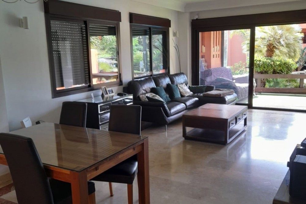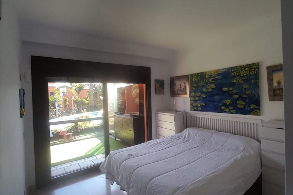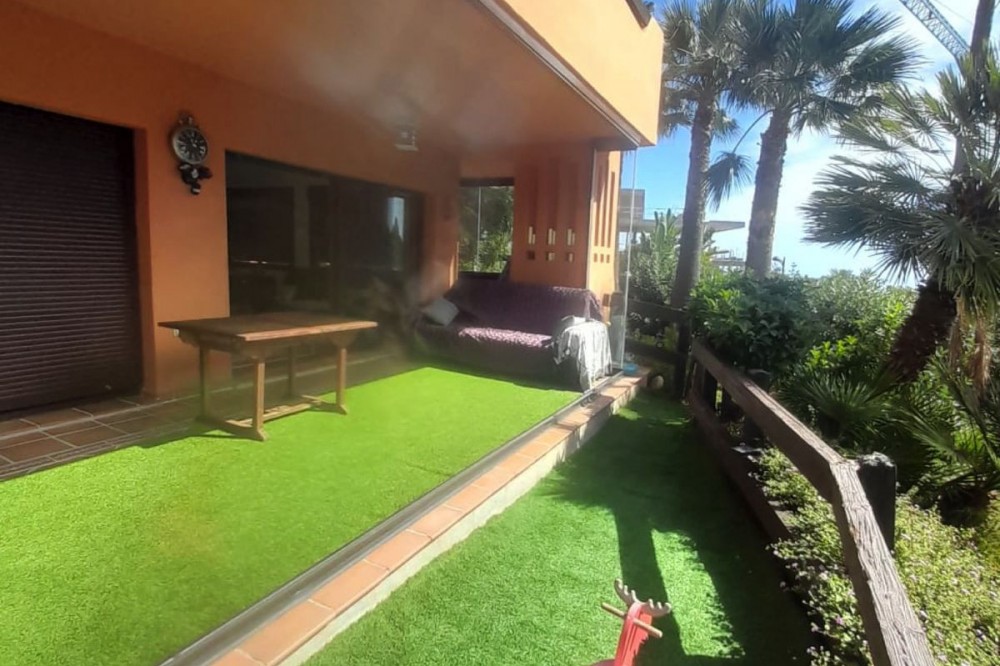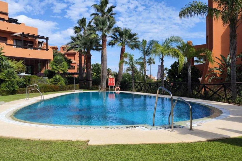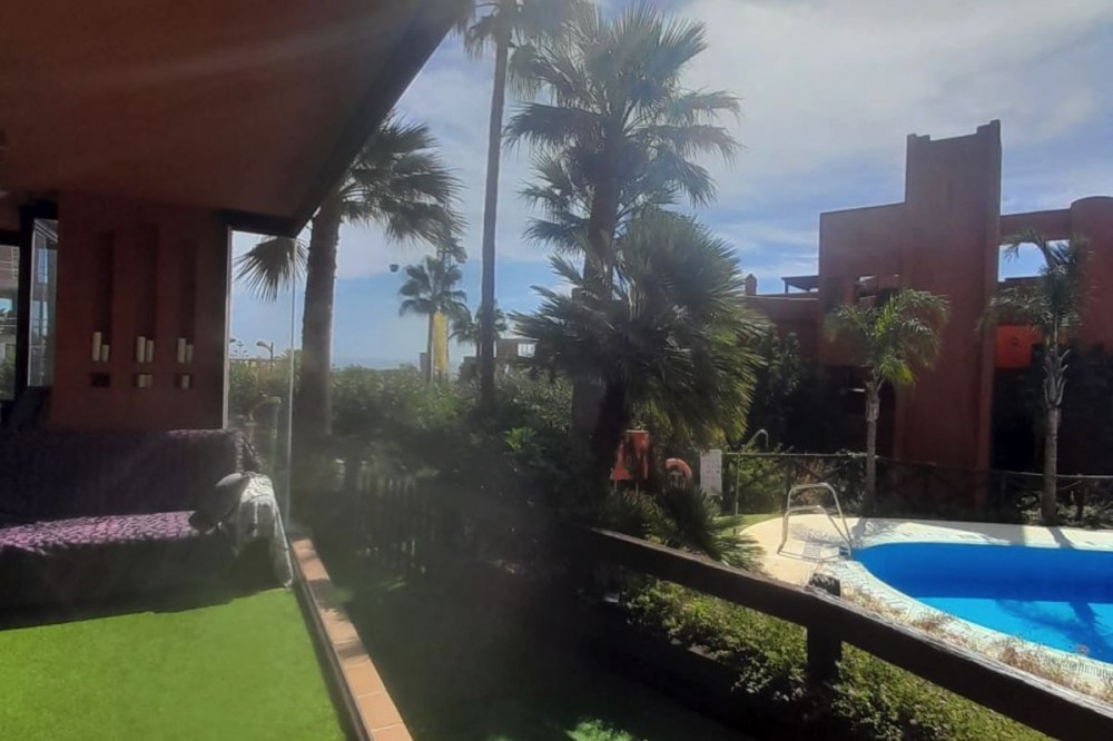 - Spacious Ground-Floor Apartment in Jardines de Nueva Galera, Estepona – Bright, Pool Access, and Enclosed Terrace! Experience coastal living at its finest in this stunning ground-floor apartment in the desirable Jardines de Nueva Galera complex, Urbanización Buenas Noches, Estepona. Boasting an enviable east, south, and west orientation for incredible natural light all day long, this very spacious and luminous 133 m² built (123 m² useful) property is perfect for year-round comfort. With direct access to the community pool from your private terrace, it's an ideal retreat for families or those seeking a serene holiday home on the Costa del Sol. Key Features: Bright and Airy Layout: Entrance hall leading to an independent kitchen with laundry room; expansive living room flooded with light from a large window and two side windows, providing access to the generous terrace with direct pool entry. Comfortable Bedrooms: 2 double bedrooms – the master en-suite with private bathroom, built-in wardrobe, and terrace access offering pool views; the second with a built-in wardrobe. High-Quality Finishes: Aluminum exterior carpentry, white-lacquered doors, air conditioning throughout, and built-in wardrobes for modern elegance. Outdoor Haven: Large terrace enclosed with premium Lumon glass curtains for year-round use, plus community garden and swimming pool. Practical Inclusions: Garage space suitable for a large car plus motorcycle, and a dedicated storage room – all included in the price. Convenient Amenities: Elevator in the building, ensuring accessibility even on the ground floor. Nestled in a peaceful urbanization, this apartment combines space, light, and convenience – just moments from Estepona's beaches, amenities, and vibrant lifestyle. Contact us today to schedule a viewing!