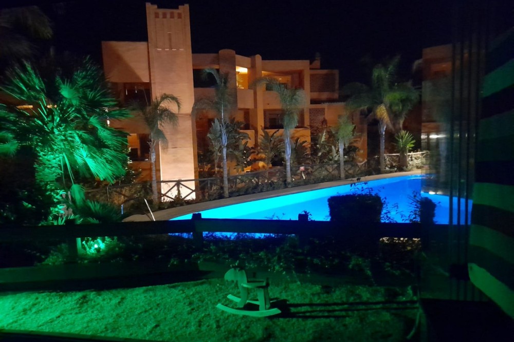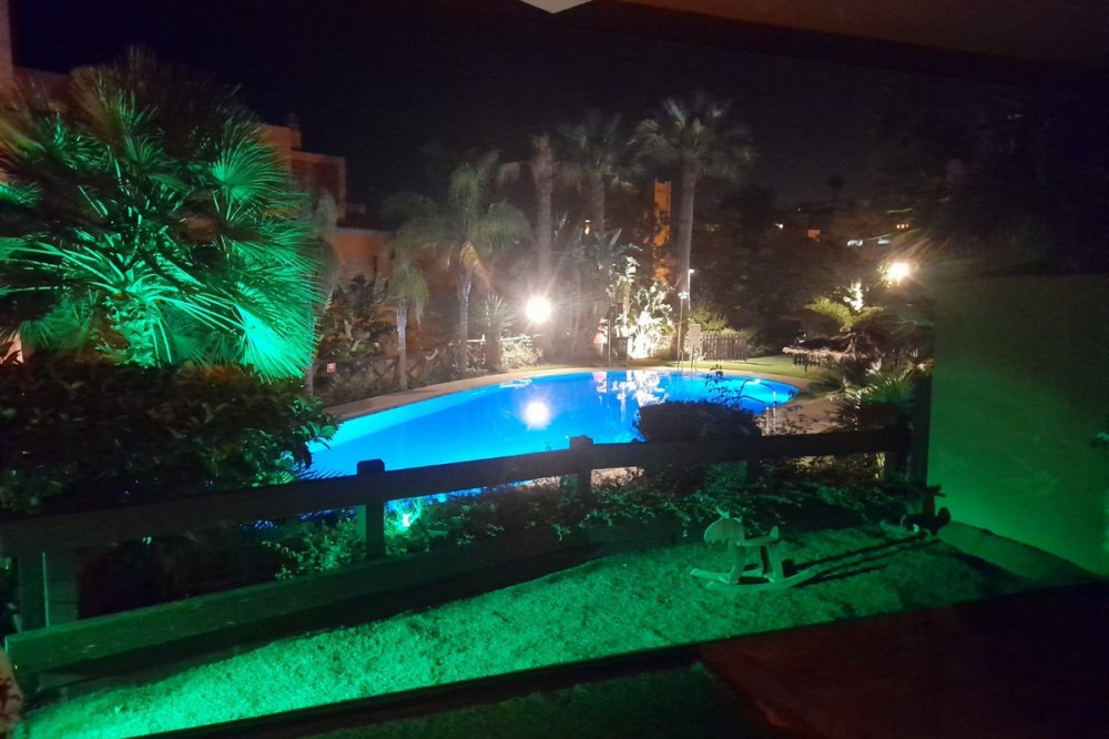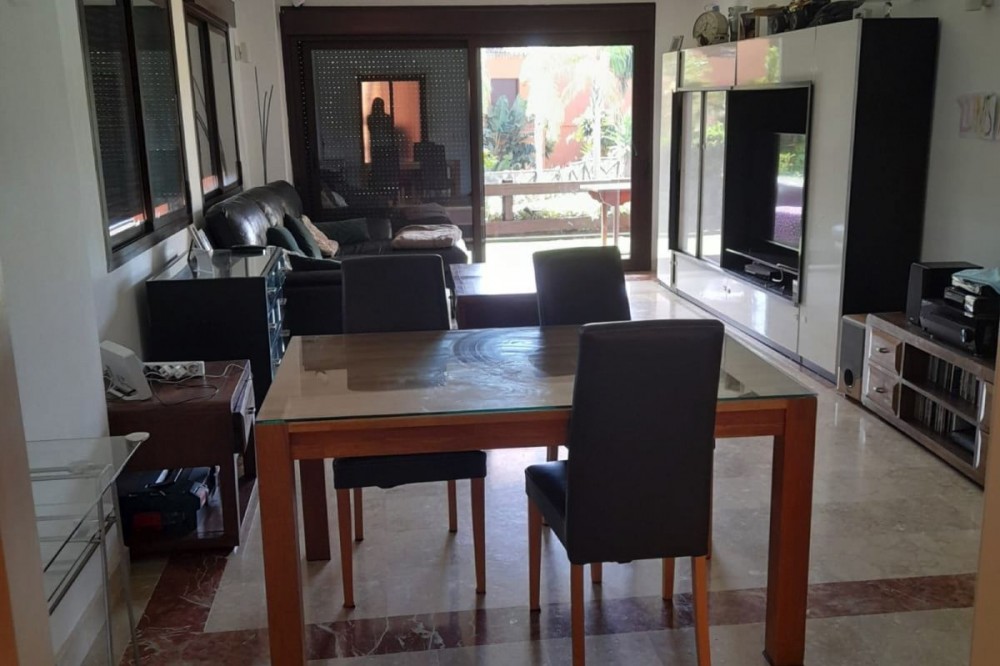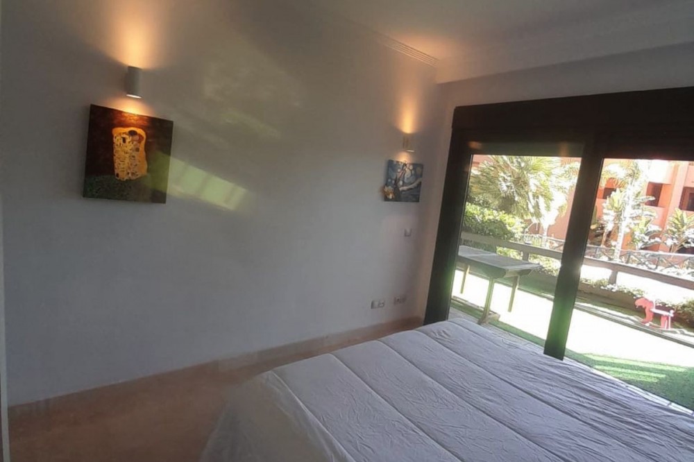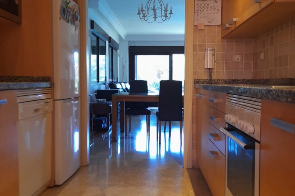 - Spacious Ground-Floor Apartment in Jardines de Nueva Galera, Estepona – Bright, Pool Access, and Enclosed Terrace! Experience coastal living at its finest in this stunning ground-floor apartment in the desirable Jardines de Nueva Galera complex, Urbanización Buenas Noches, Estepona. Boasting an enviable east, south, and west orientation for incredible natural light all day long, this very spacious and luminous 133 m² built (123 m² useful) property is perfect for year-round comfort. With direct access to the community pool from your private terrace, it's an ideal retreat for families or those seeking a serene holiday home on the Costa del Sol. Key Features: Bright and Airy Layout: Entrance hall leading to an independent kitchen with laundry room; expansive living room flooded with light from a large window and two side windows, providing access to the generous terrace with direct pool entry. Comfortable Bedrooms: 2 double bedrooms – the master en-suite with private bathroom, built-in wardrobe, and terrace access offering pool views; the second with a built-in wardrobe. High-Quality Finishes: Aluminum exterior carpentry, white-lacquered doors, air conditioning throughout, and built-in wardrobes for modern elegance. Outdoor Haven: Large terrace enclosed with premium Lumon glass curtains for year-round use, plus community garden and swimming pool. Practical Inclusions: Garage space suitable for a large car plus motorcycle, and a dedicated storage room – all included in the price. Convenient Amenities: Elevator in the building, ensuring accessibility even on the ground floor. Nestled in a peaceful urbanization, this apartment combines space, light, and convenience – just moments from Estepona's beaches, amenities, and vibrant lifestyle. Contact us today to schedule a viewing!