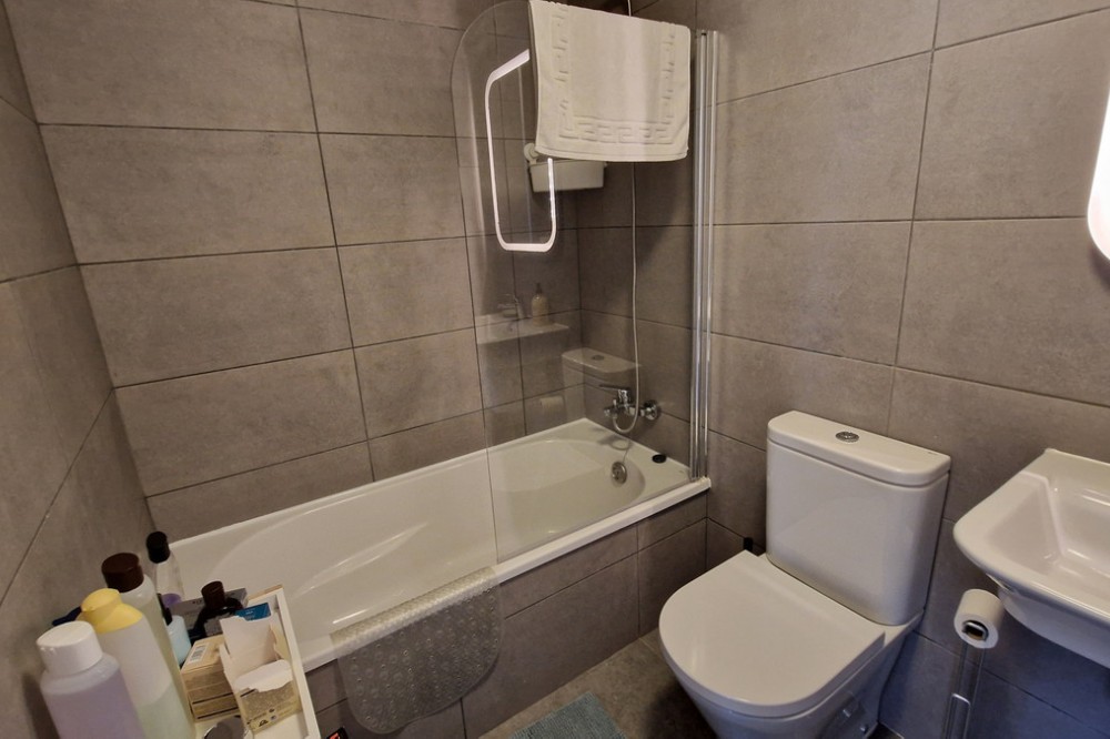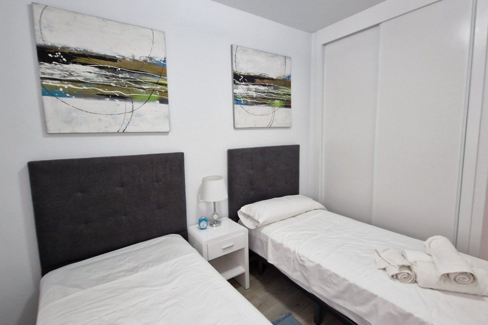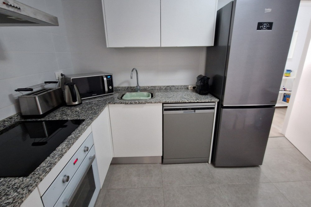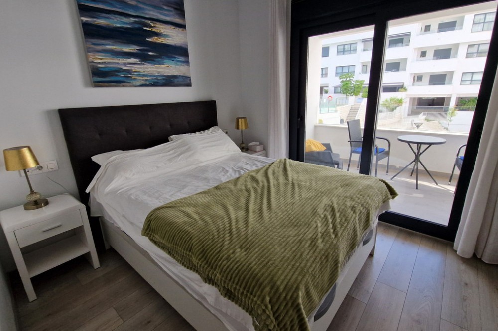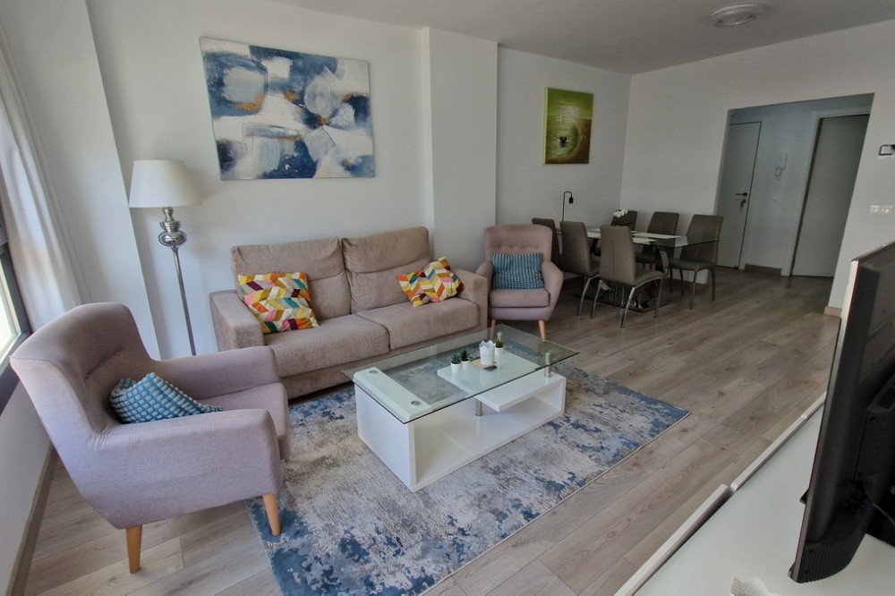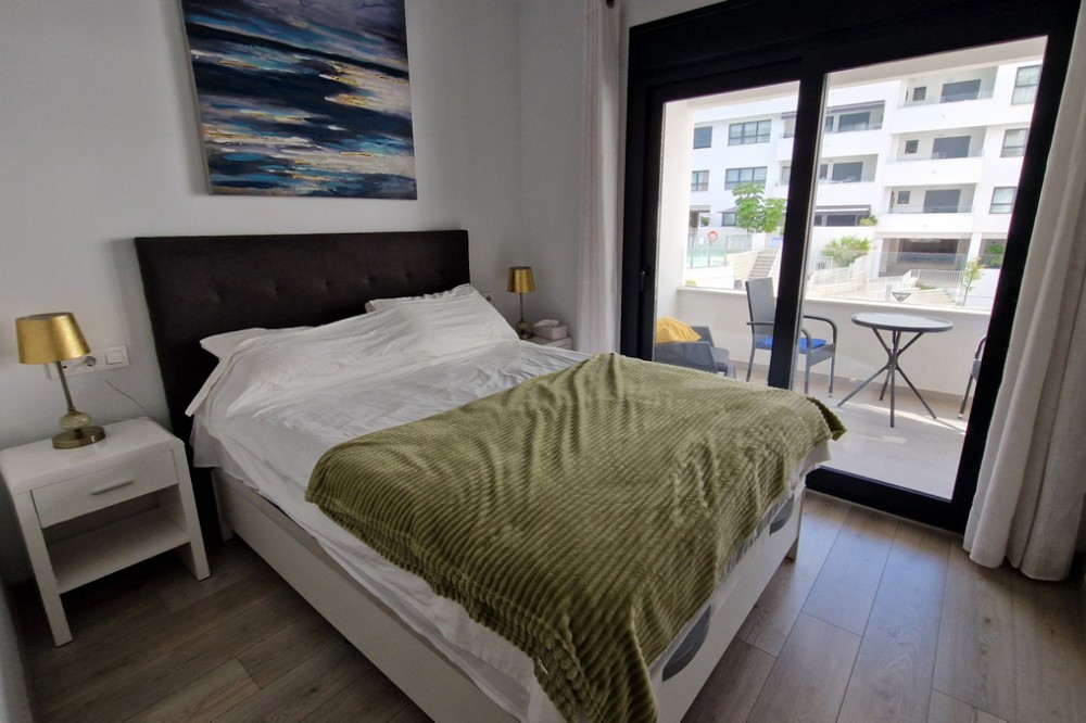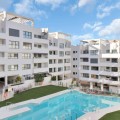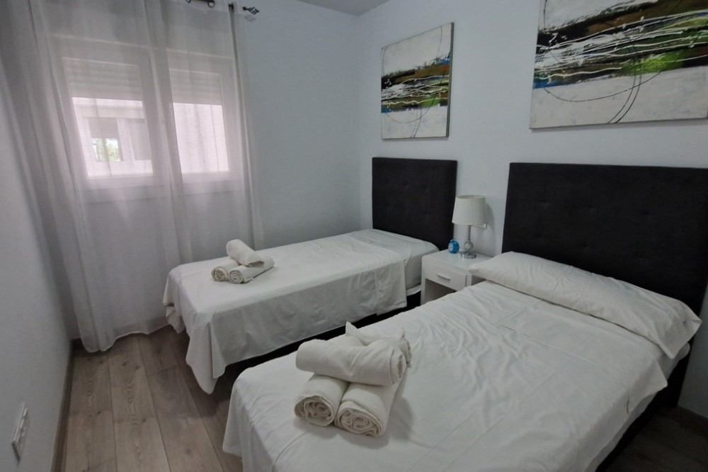 - Beautiful bright new 2 bedroom, 2 bathroom apartment in Estepona Gardens, which is a development located in the centre of Estepona town. This latest phase was built only 2 years ago in 2023. It is only 5 minutes walk from the historical Old Town and 10 minutes to the beach. Local amenities such as health centres, schools, parks, restaurants, shops and supermarkets are all within a short walk. This modern apartment has an entrance hall, 2 bedrooms, 2 bathrooms, (1 family bathroom with bath & shower, 1 ensuite with shower), separated by a small hall and door, leading to a large bright sitting-room, kitchen, utility room and terrace. It includes a garage space and a storage room. It is south west facing, located inside the complex, on the first floor overlooking the pool and children’s play area. Some of the features include the fitted kitchen and utility room, with all the appliances, air-conditioning hot/cold, solar panels on the roof for hot wáter and full WiFi coverage, amongst others. This first floor apartment is accessible with own key access through secure gates with internal intercom, via lift and stairs. The complex has extensive communal areas and gardens, including a large swimming pool, playground for children, and an outdoor gym.