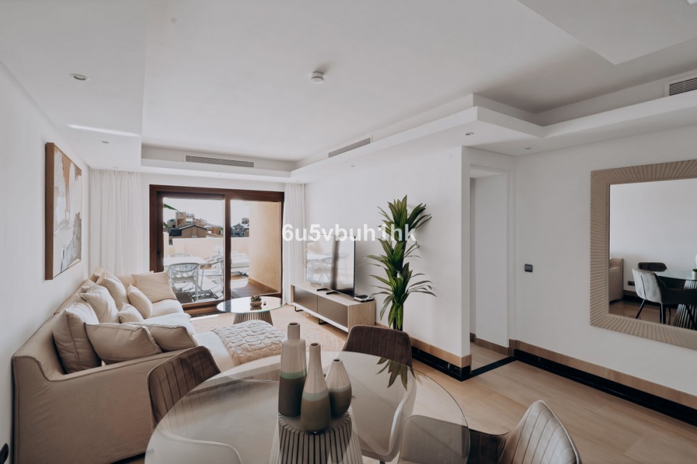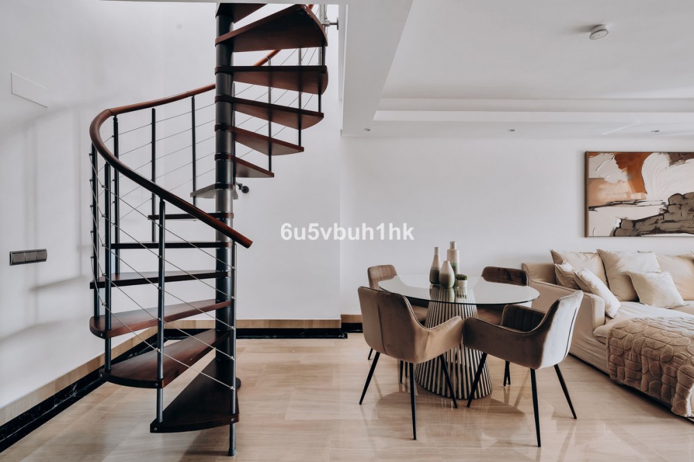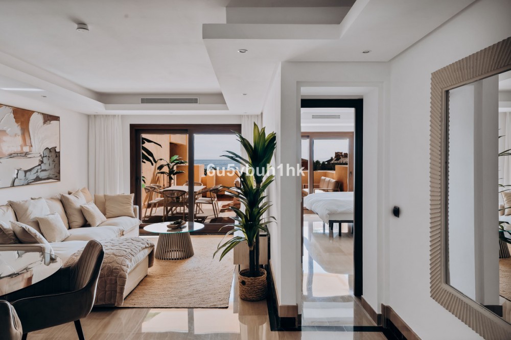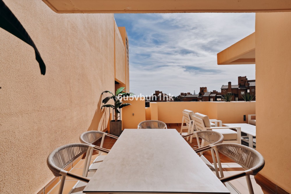 - Discover this spectacular 3-bedroom, 3-bathroom duplex penthouse, located in the prestigious Bahía de la Plata development, right on the beachfront in Estepona. A truly unique property that combines luxury, comfort, and an unbeatable setting with breathtaking views of the Mediterranean Sea and the Rock of Gibraltar. Fully renovated in a refined Nordic style, the residence offers bright open spaces, clean lines, and top-quality finishes, creating a sophisticated yet welcoming atmosphere—perfectly suited to the Mediterranean lifestyle. On the main floor, large windows connect the living-dining area with a private terrace, an ideal spot to unwind while enjoying the sea views. The modern, fully equipped kitchen blends seamlessly into the open-plan design, making it ideal for family life or entertaining guests. Each of the three en-suite bedrooms ensures privacy and comfort, with the master suite boasting direct access to the stunning panoramas. The property is in excellent condition, move-in ready, and designed for those seeking an exclusive residence or a perfect second home by the sea. The gated community of Bahía de la Plata provides 24-hour security, swimming pools, a gym, spa facilities, and direct beach access—making this a unique opportunity for buyers who value quality, location, and exclusivity.