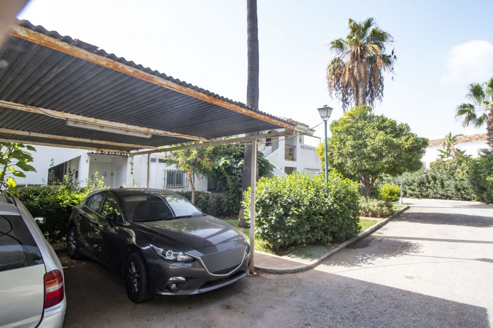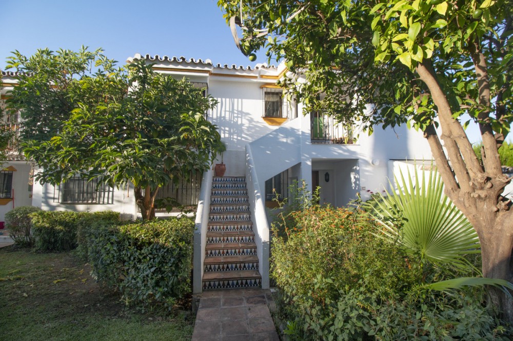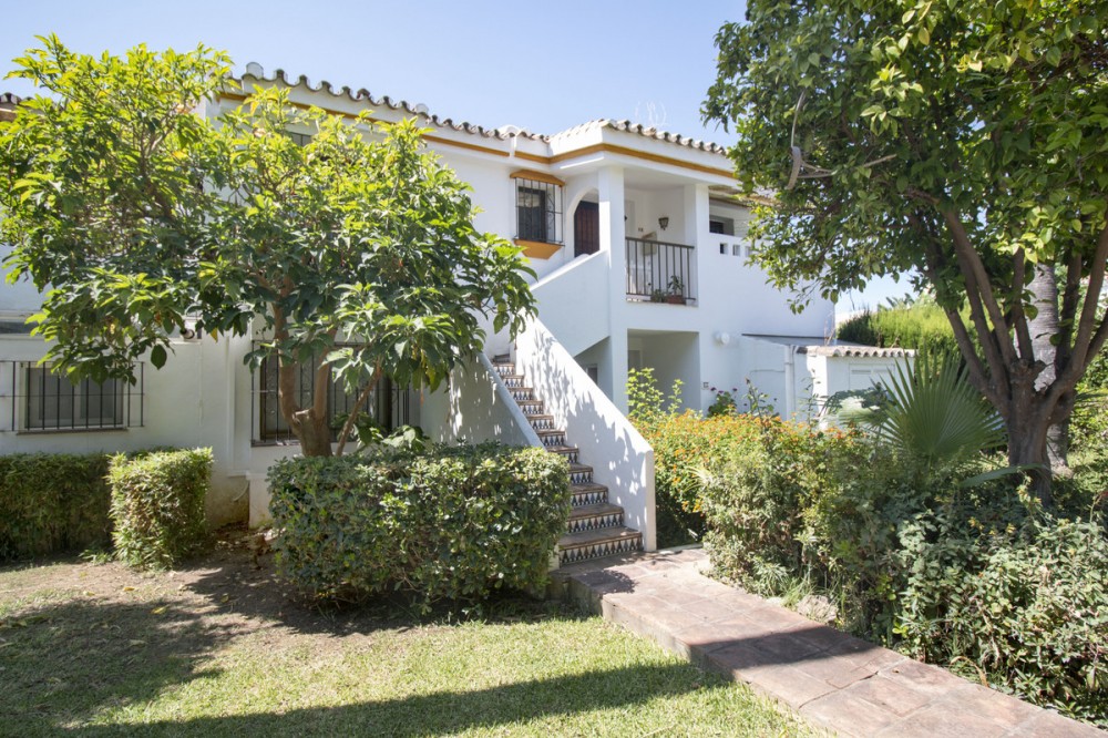 - Stylish First-Floor Apartment in Nueva Atalaya – 2 Bedrooms, 2.5 Bathrooms Beautifully presented first-floor apartment located in the sought-after residential area of Nueva Atalaya, ideally positioned close to all amenities, including schools, shops, restaurants, and with easy access to the main road connecting Marbella, Estepona, and Benahavís. The apartment offers two spacious bedrooms, both with ensuite bathrooms, plus an additional guest bathroom for added convenience. The large open-plan living and dining area features a striking high vaulted ceiling that enhances the sense of space and light, while a wood-burning fireplace creates a warm and welcoming atmosphere — perfect for year-round comfort. From the living room, sliding doors lead out to a covered terrace with glass curtains, providing a versatile outdoor space ideal for relaxing or entertaining in all seasons. The terrace enjoys views over the immaculately maintained communal gardens, surrounded by mature greenery and a large swimming pool that invites you to enjoy the Costa del Sol lifestyle. Additional features include a covered carport, air conditioning, and access to a well-established, friendly community renowned for its peaceful environment and excellent upkeep. This property offers an outstanding investment opportunity — perfect as a permanent home, holiday getaway, or rental investment. Combining comfort, character, and a prime location, this Nueva Atalaya apartment represents the very best of relaxed Mediterranean living.